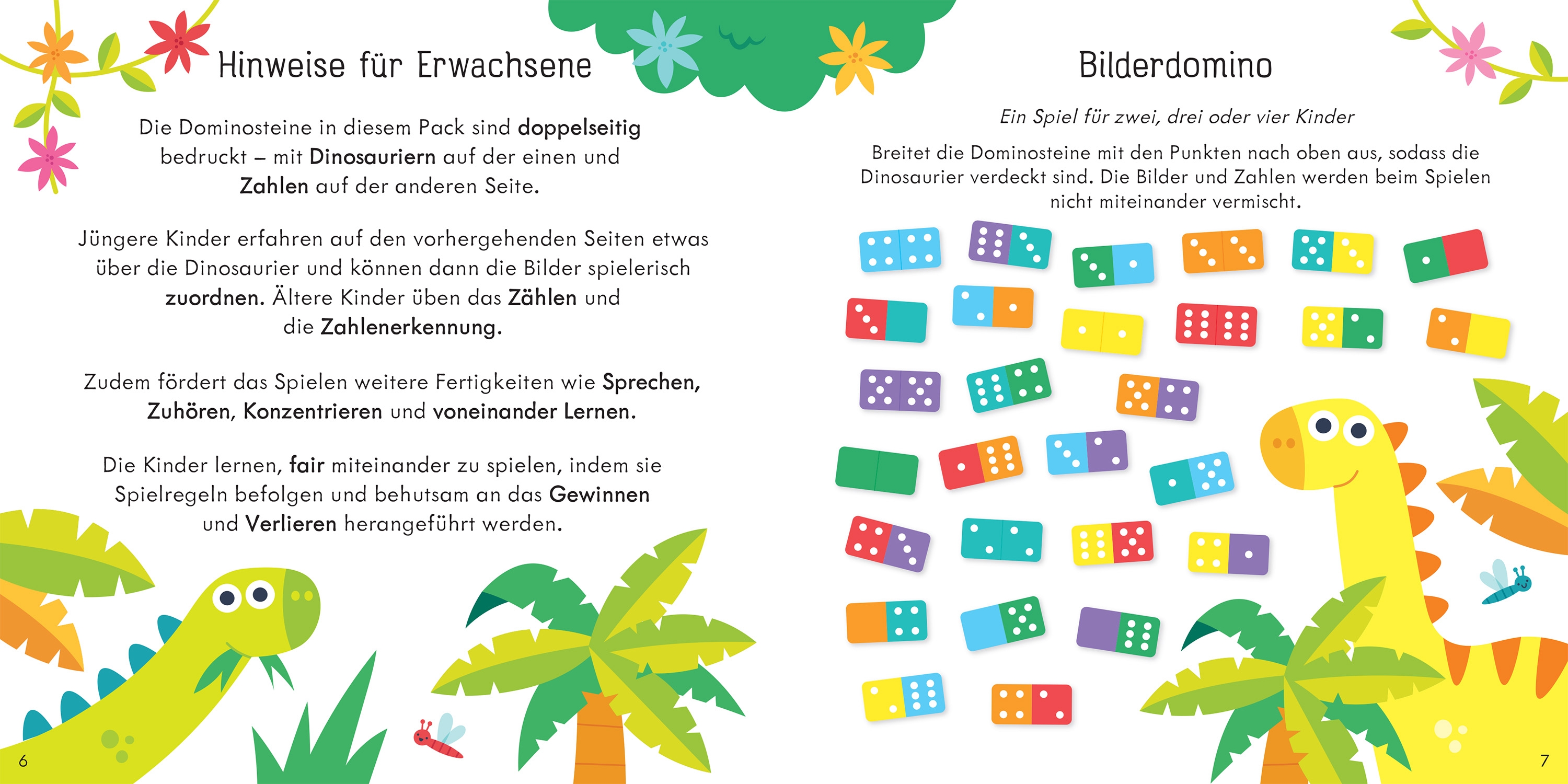 Wer wird seine Dominos als Erstes los? Legt gleiche Dinos oder Zahlen aneinander und gewinnt! Dieser dinostarke Spieleklassiker enthält 28 beidseitig bedruckte Dominos und ein Buch mit leicht verständlichen Anleitungen für zwei Spielvarianten sowie Tipps für Erwachsene und interessante Fakten über sieben Dinosaurierarten.