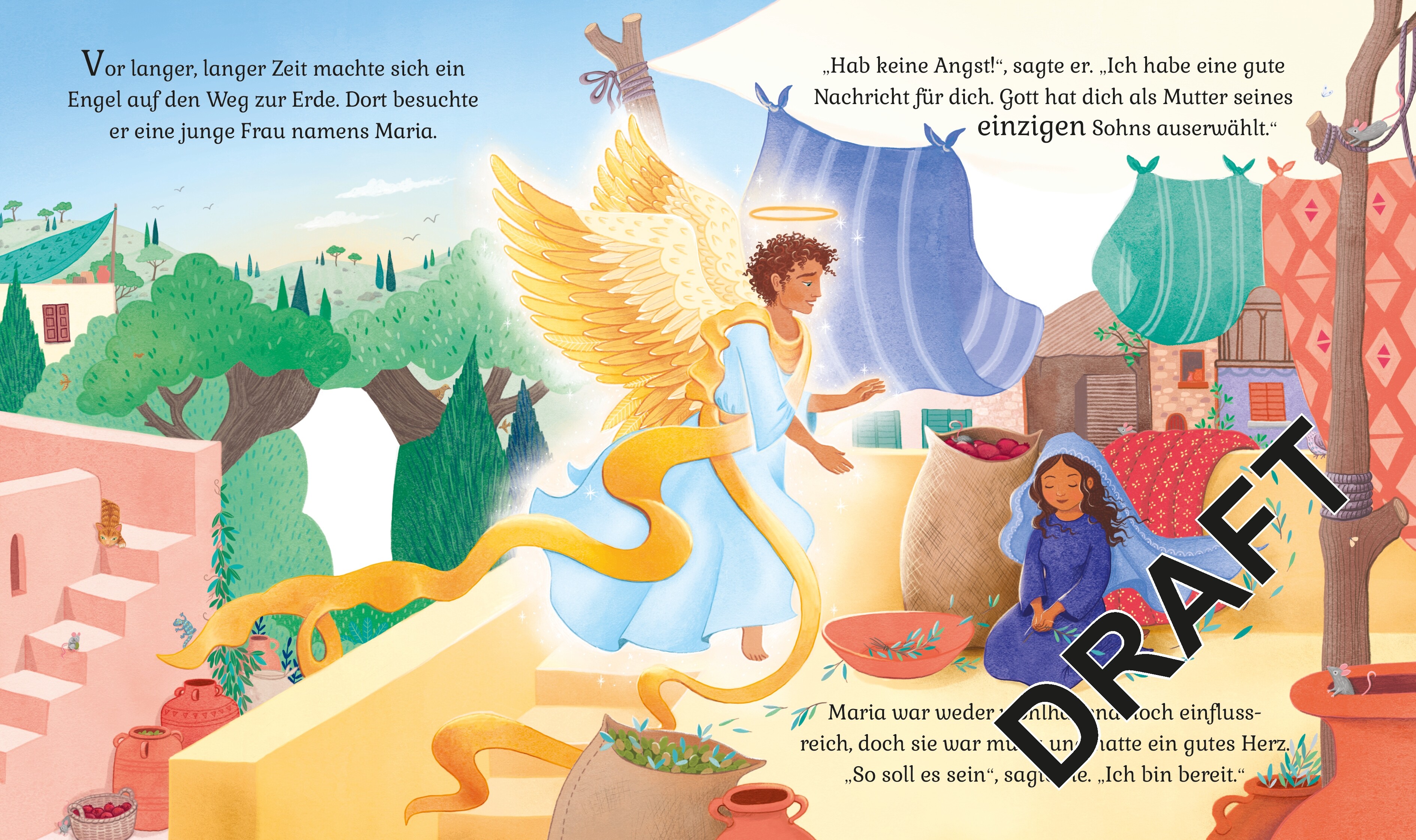 - Die biblische Geschichte kindgerecht nacherzählt - der Engel spricht zu Maria, das Jesuskind liegt in der Krippe u. v. m.