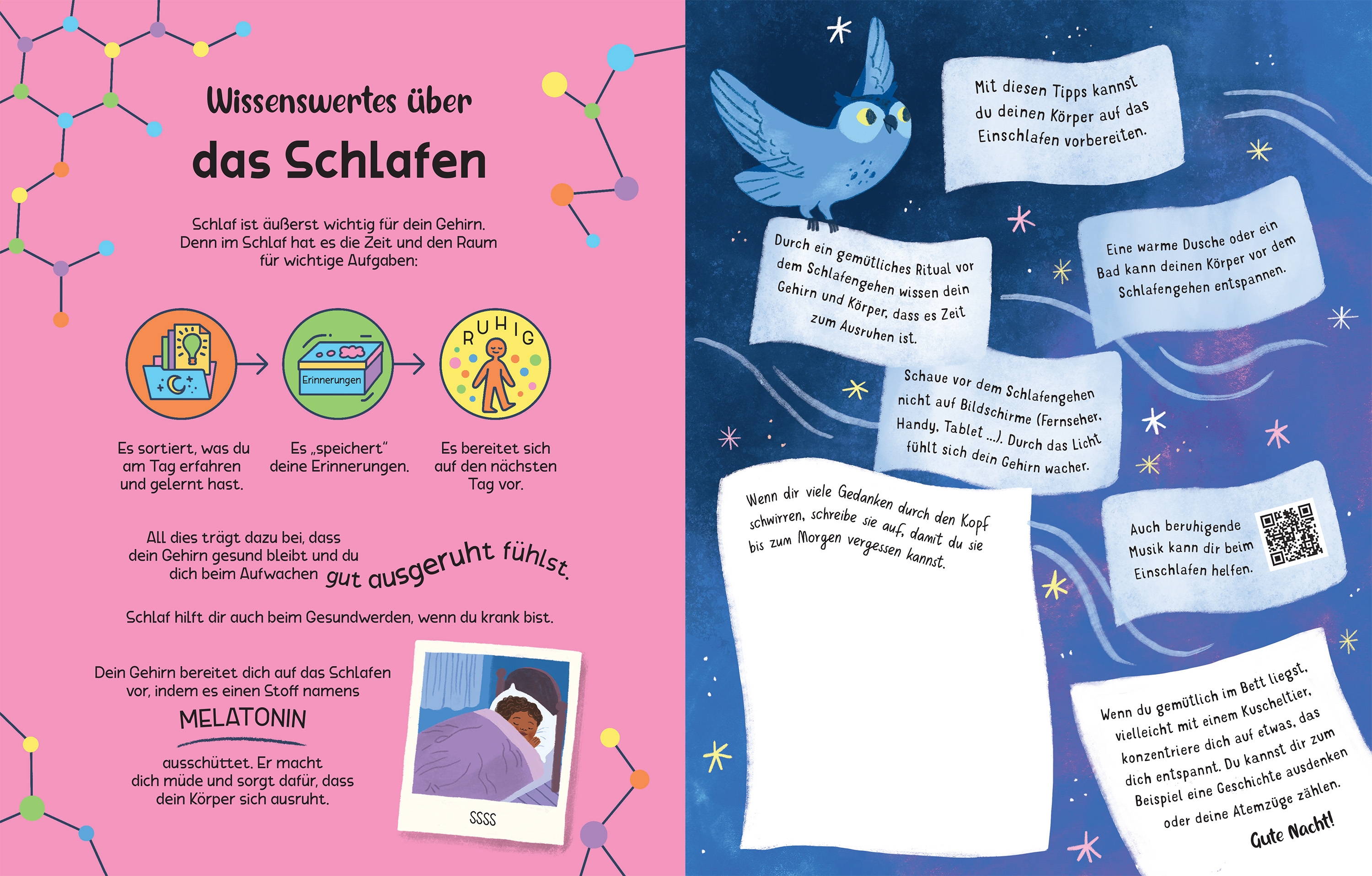 Die abwechslungsreichen Beschäftigungsideen in diesem Buch laden zur Achtsamkeit ein und lassen dich zur Ruhe kommen. Hier kannst du ausmalen, rätseln, fantastische Welten kreieren sowie erfahren, warum Schlaf wichtig ist, Umarmungen Stress reduzieren oder manche Gerüche beruhigend wirken.