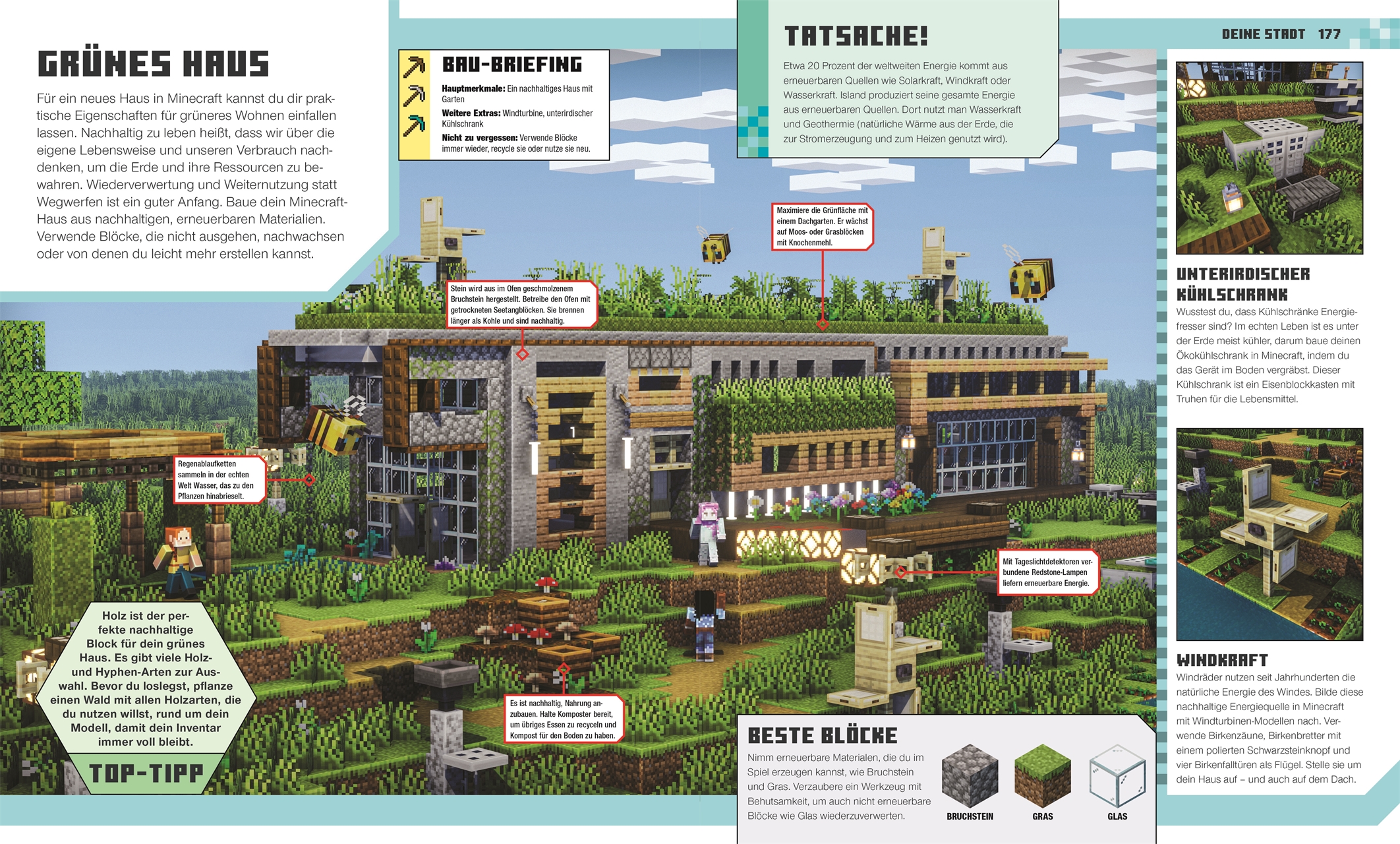 - Hilfreiche Techniken und Vorschläge von cleveren Minecraft Baumeister*innen zu Planung und Umbau von Bauwerken lassen begeisterte Spieler*innen zu Profis werden.