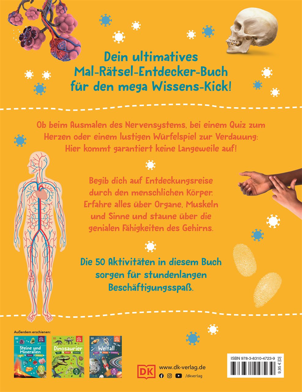 Ausmalen, spielen, Rätsel lösen - und ganz nebenbei Spannendes über den eigenen Körper erfahren! Wie entsteht ein Röntgenbild? Und über welche Superkrafte verfügt das menschliche Gehirn? Mit der Mitmach-Wissens-Kick-Reihe für Kinder ab 6 kommt garantiert keine Langeweile auf. Jede Seite enthält neben mitreißenden Aktivitäten Wissenswertes über absolute Lieblingsthemen. Wissen, Kreativität, Spaß und Fantasie für viele Stunden!