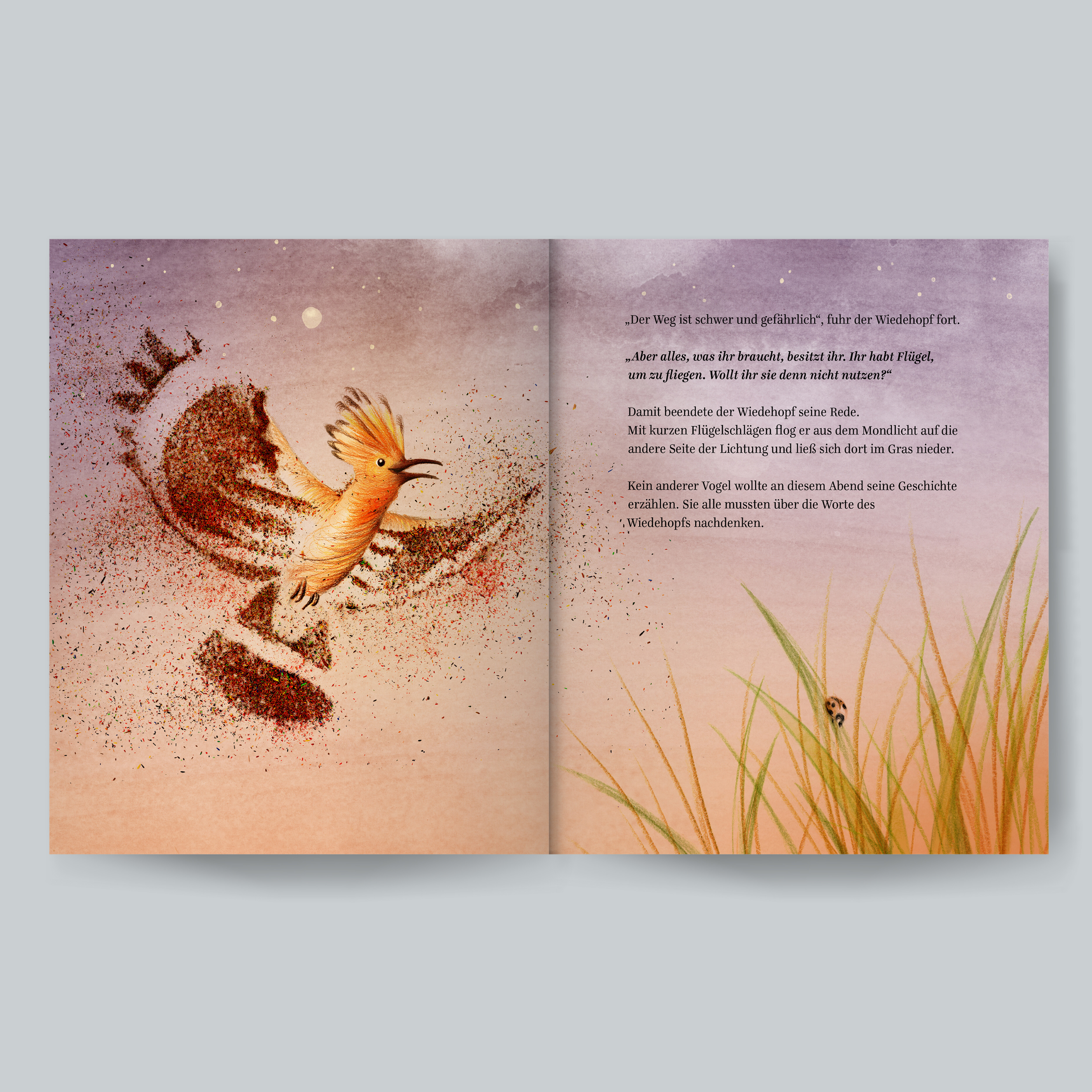 Das Buch handelt von der Überwindung eigener Ängste, dem Erkennen der eigenen Fähigkeiten und einem Glück, das in uns allen wohnt. Mit seinen schönen Botschaften und herzerwärmenden Illustrationen ist es das perfekte Geschenk für jeden Anlass. Eine philosophische Geschichte, die spirituell ist, ohne religiös zu sein. Ein Buch, das von Leserinnen und Lesern immer wieder gerne zur Hand genommen und durchgeblättert wird.
