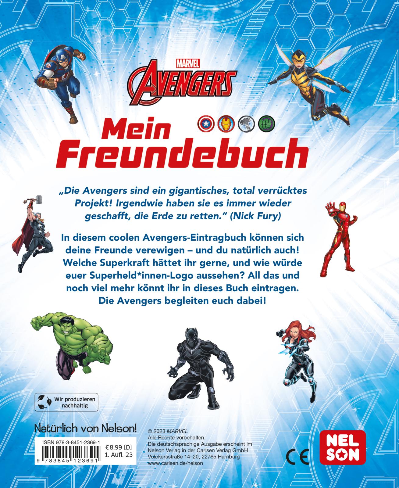 In diesem coolen Eintragbuch können sich alle Avengers-Fans verewigen und ihre Vorliebe für Superheld*innen miteinander teilen. Jede Doppelseite bietet spannende Fragen und viel Platz zum Ausfüllen, Malen und Kreativwerden.