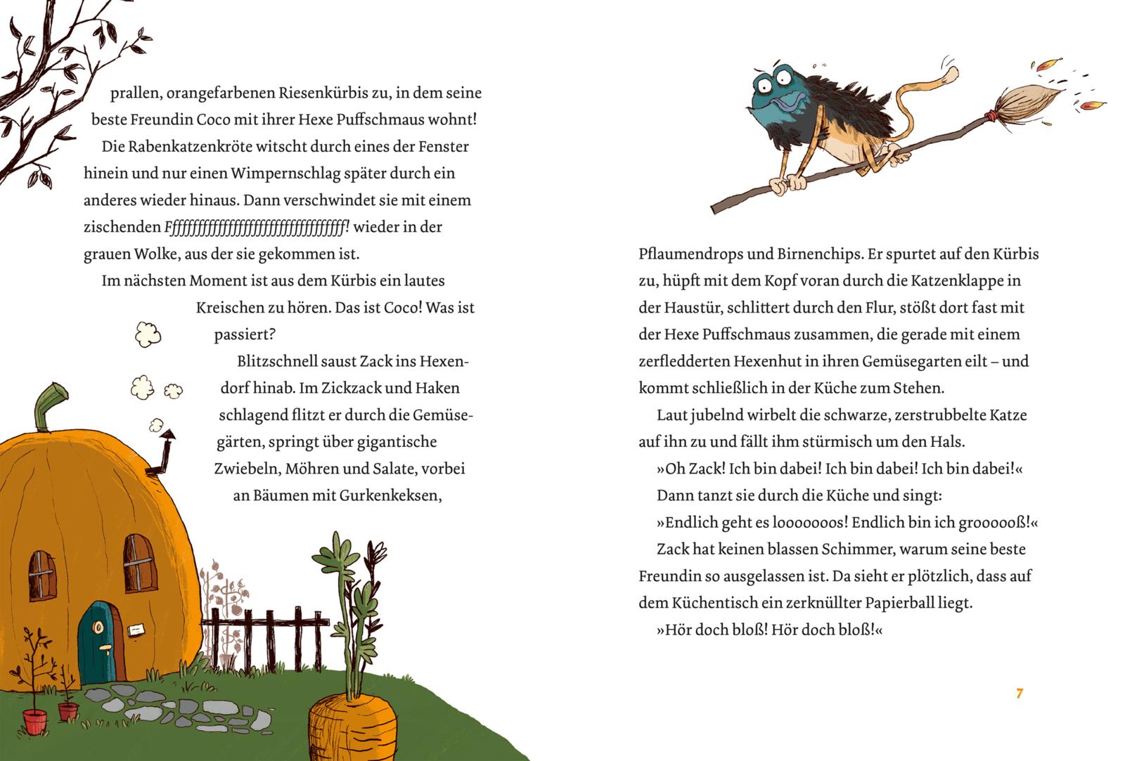 Zauberhuthase Zack und Hexenkatze Coco sind unzertrennlich. Doch dann wird Coco ins Internat für Hexentiere geschickt, das ausschließlich Katzen, Kröten, Schlangen, Spinnen, Raben und Ratten vorbehalten ist. Für die beiden steht natürlich fest: Zack muss mit! Und zwar undercover, als Hexenkatze verkleidet. Doch schon beim ersten Flug auf dem Hexenbesen verliert er seinen falschen Schwanz. Oje - ob der Schwindel auffliegt? Und ob die beiden den rätselhaften Fluch der Küchenschürze brechen können, der das Internat in Atem hält?