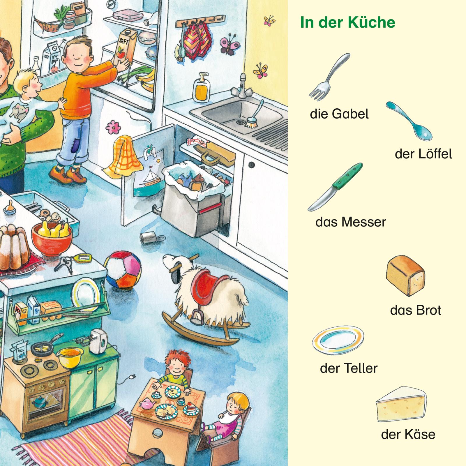 Draußen und drinnen gibt es eine Menge bunte Sachen zu entdecken: Was siehst du alles Leckeres auf dem Frühstückstisch? Findest du die Bohrmaschine in der Werkstatt? Und wo ist eigentlich der Eiswagen im Park? Spannende Wimmelbilder zum Suchen, Staunen und Weitererzählen für Kinder ab 3 Jahren.