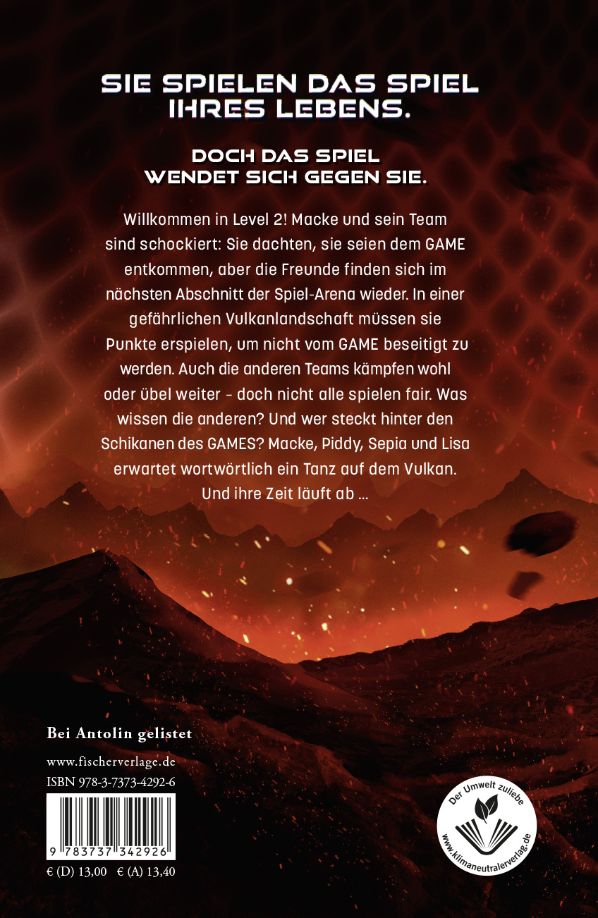 Willkommen in Level 2! Macke und sein Team sind schockiert: Sie dachten, sie seien dem GAME entkommen, aber die Freunde finden sich im nächsten Abschnitt der Spiel-Arena wieder. In einer gefährlichen Vulkanlandschaft müssen sie Punkte erspielen, um nicht vom GAME beseitigt zu werden. Auch die anderen Teams kämpfen weiter - doch nicht alle spielen fair. Was wissen die anderen? Und wer steckt hinter den Schikanen des GAMES? Macke, Piddy, Sepia und Lisa erwartet wortwörtlich ein Tanz auf dem Vulkan. Und ihre Zeit läuft ab ...