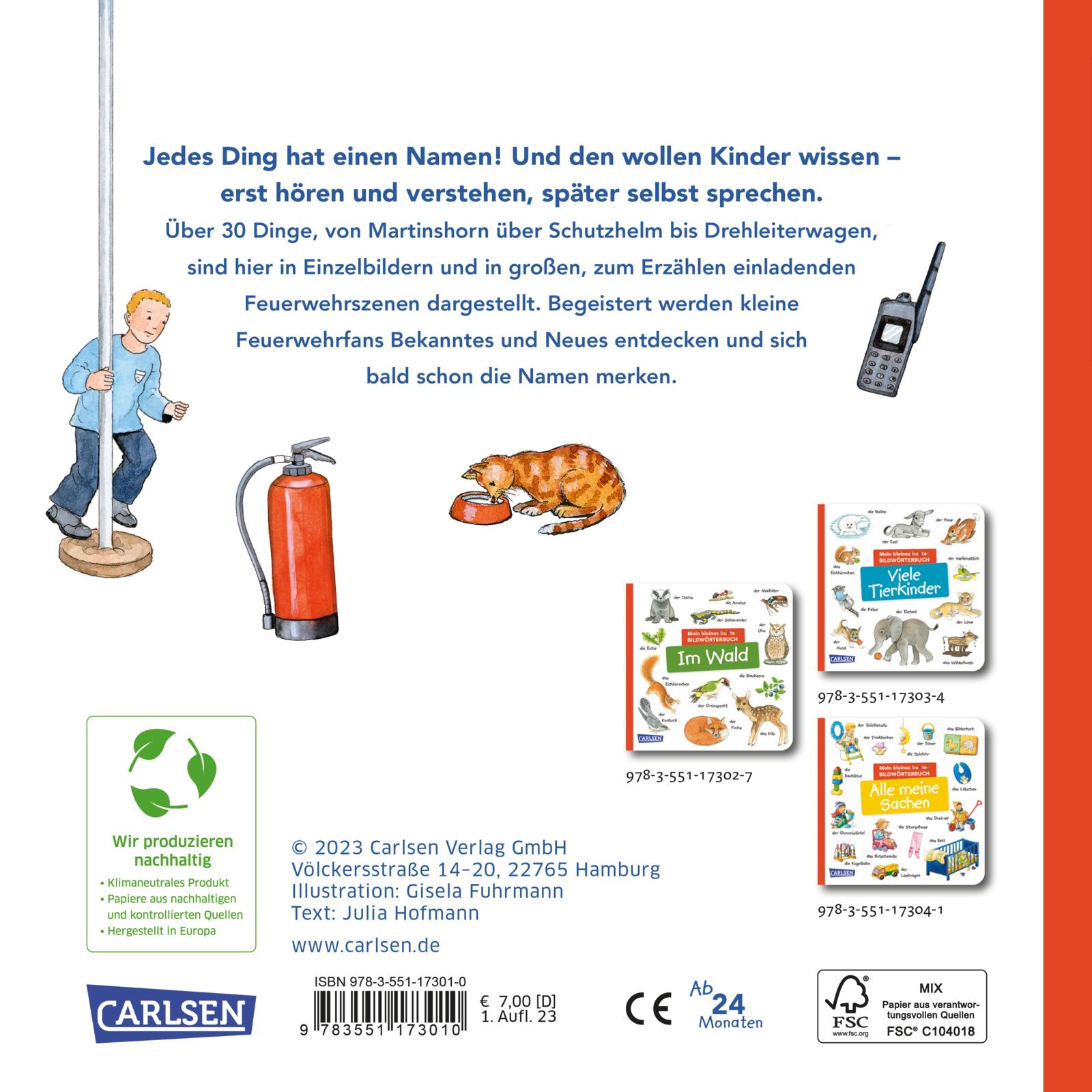 Es brennt! Einsatz! Schau, da saust der Feuerwehrmann die Rutschstange hinunter. Schnell noch die Schutzkleidung an und los geht die Fahrt. Tatütata! So schallt es aus dem ... ? Martinshorn! Jedes Ding hat einen Namen. Neben Martinshorn lernen die kleinsten Feuerwehrfans noch viel mehr Dinge kennen. Altersgerecht, sachgenau und lebendig illustriert bietet dieses Buch jede Menge Gesprächsanlässe und erweitert den passiven und aktiven Wortschatz.