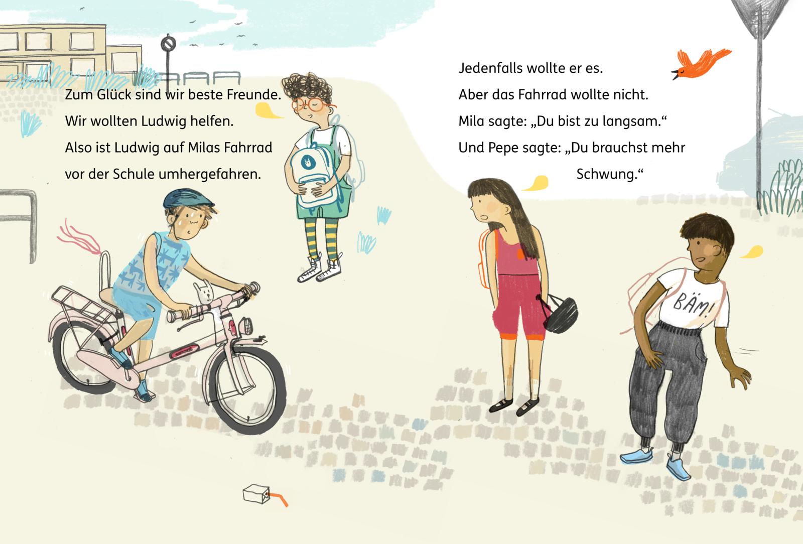 Sie sind allerbeste Freund*innen: Ludwig, Pepe, Mila und das Kind mit den wilden Locken und der knalligen Brille. Doch plötzlich scheint das nicht mehr zu reichen: Niko aus der 3a erzählt auf dem Schulhof, wie er ein Kätzchen gerettet hat - und wird als Held gefeiert. Nun wollen die Vier auch Held*innen sein. Aber was braucht es dafür? Superkräfte? Einen Umhang? Muss man dafür mutig sein? Einem Frosch über die Straße helfen? Pepe vor der Spielkonsole retten? Oder ist am Ende doch die größte Held*innentat, dass die Kinder zusammenhalten, als einem der Vieren ein großes Unrecht geschieht.
