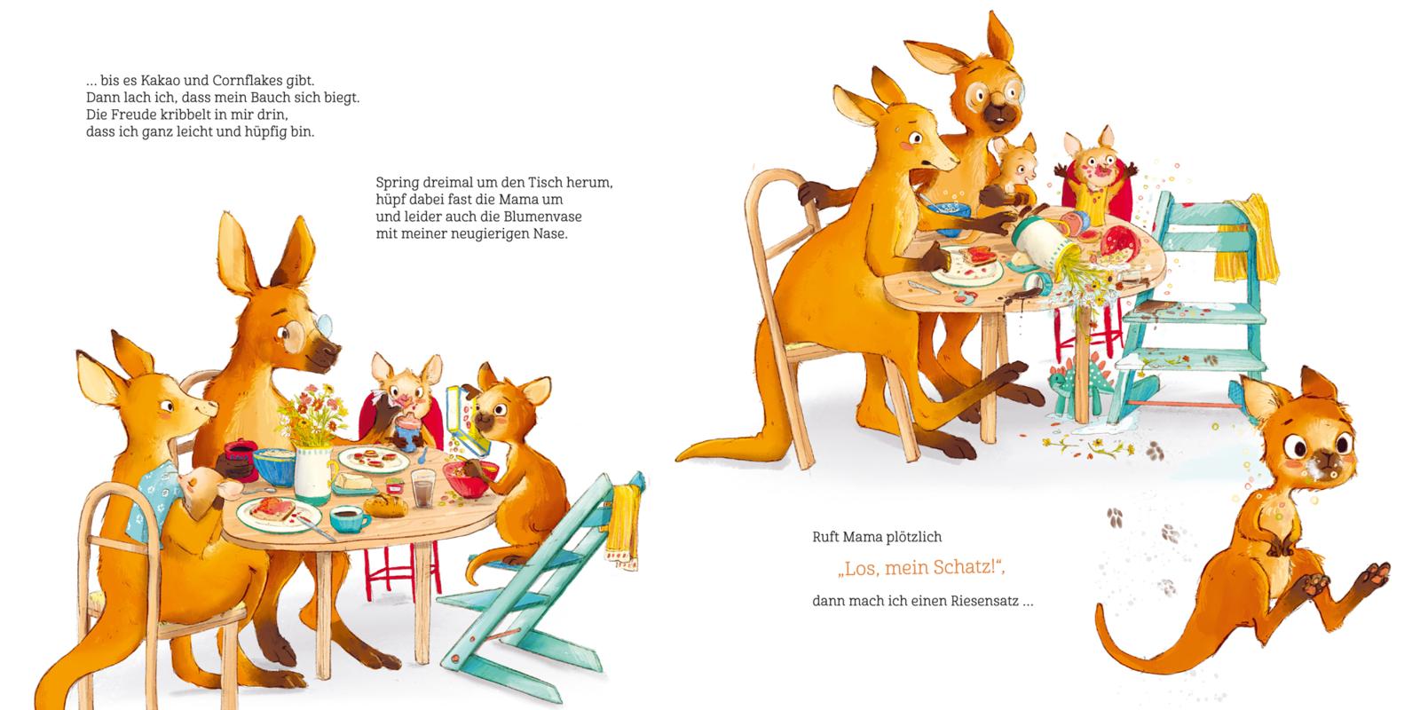Es ist noch dunkel und schon springt das Kängurukind Quirin begeistert und voller Energie in den neuen Tag hinein. Doch schnell kann die Stimmung kippen! Da stehen die Eltern nicht rasch genug morgens auf - und Quirin bricht in Tränen aus. Dort heißt es: Anziehen! Losgehen! Und wütend springt Quirin davon. Dann zwickt die Hose, stören die Knöpfe und draußen erwartet ihn all das Schnelle, Schrille, Stinkige! NEIN! Quirin steckt in einer Achterbahnfahrt der großen Gefühle. Zum Glück weiß Mama Rat: Beutel auf, Quirin rein, Beutel zu, Quirin kommt zur Ruh! Co-Regulation á la Känguru!