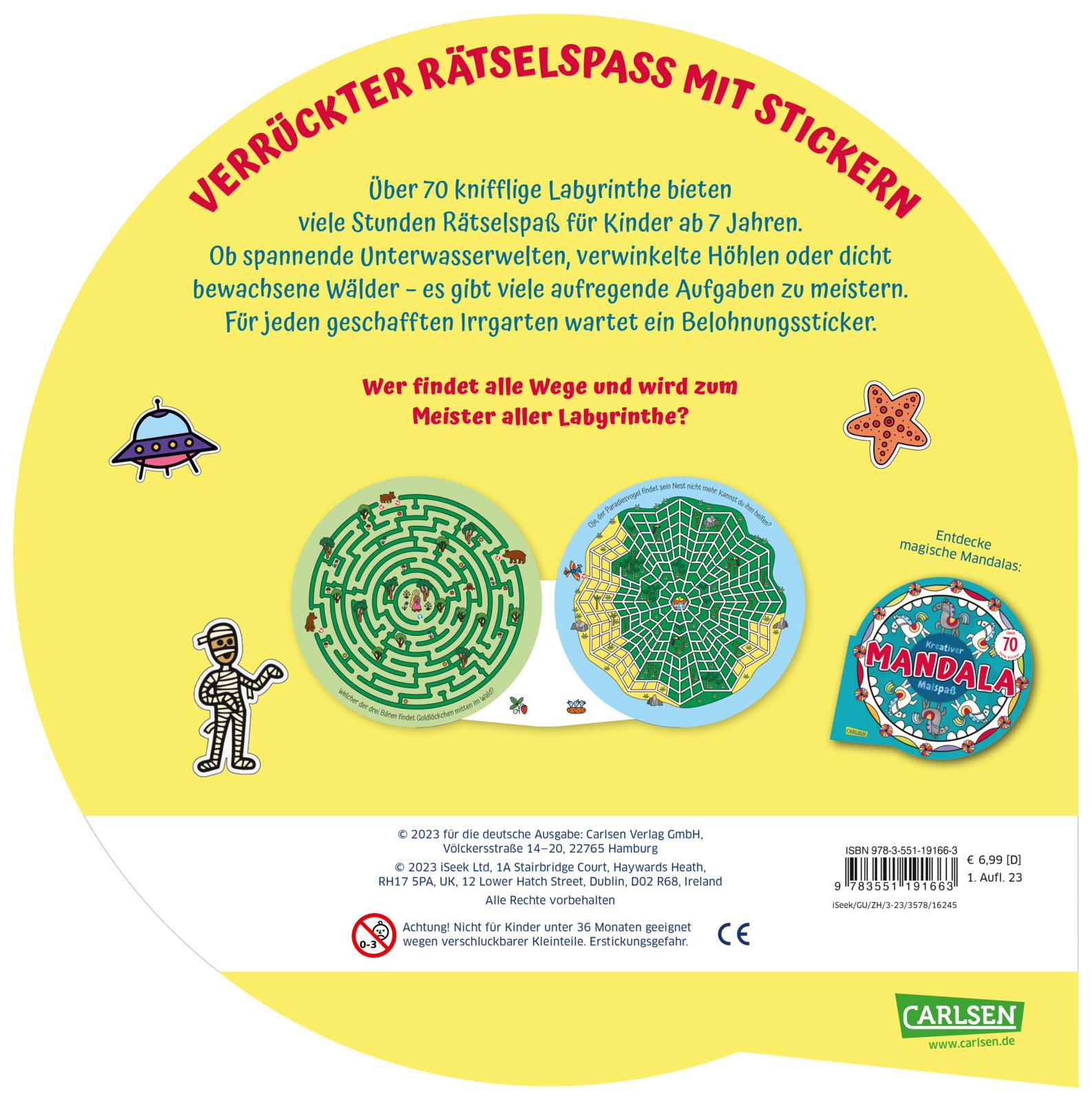 Über 70 knifflige Labyrinthe bieten viele Stunden Rätselspaß für Kinder ab 7 Jahren. Ob spannende Unterwasserwelten, verwinkelte Höhlen oder dicht bewachsene Wälder - es gibt viele aufregende Aufgaben zu meistern. Für jeden geschafften Irrgarten wartet ein Belohnungssticker.