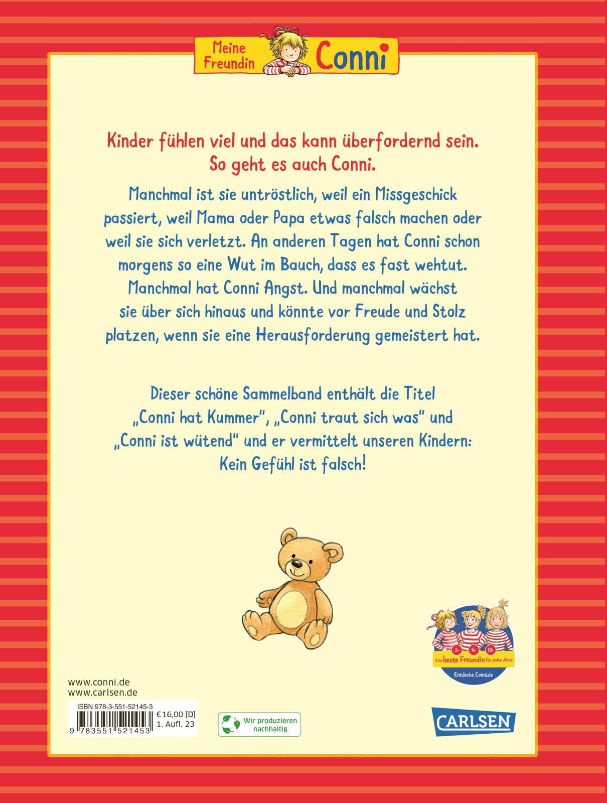 - Sammelband mit drei wichtigen Conni-Büchern zum Thema "Gefühle": Conni hat Kummer, Conni ist wütend und Conni traut sich was