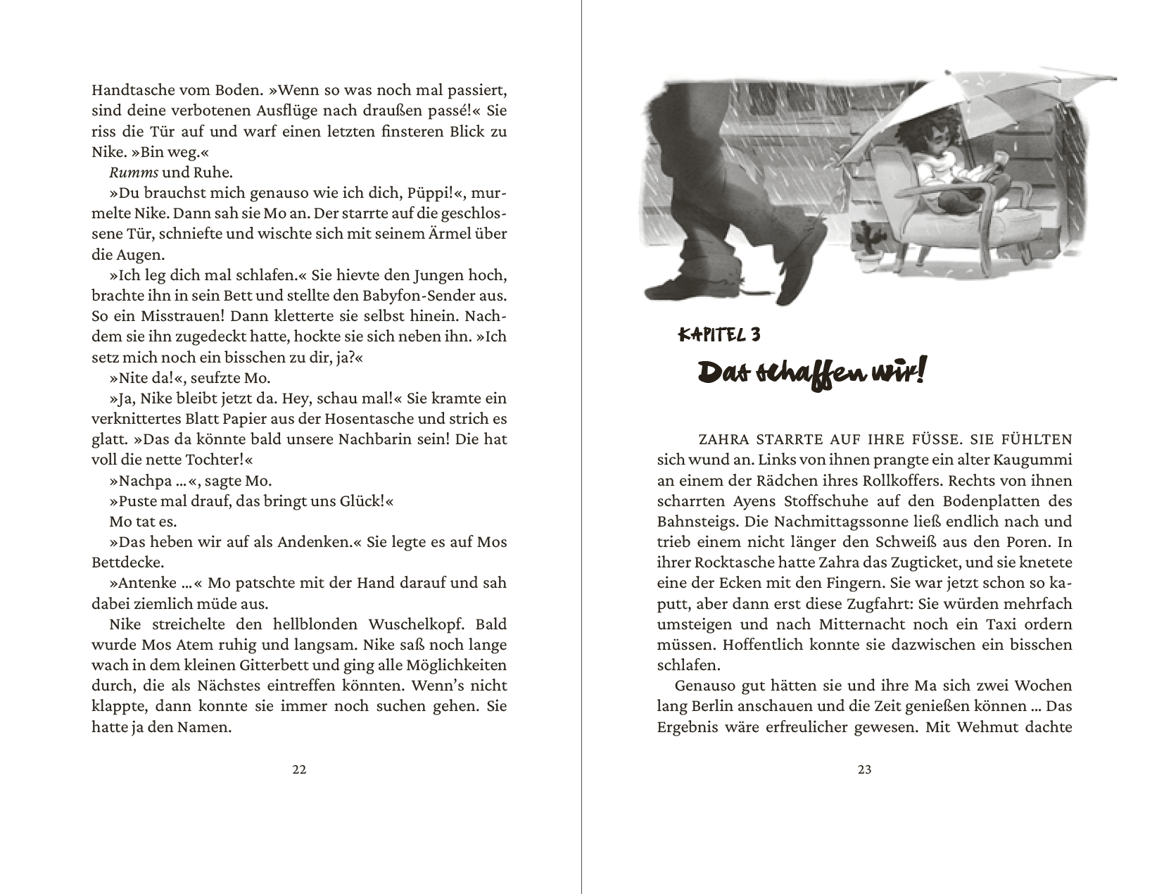 Zahra ist neu in Berlin und mit ihrer Ma auf Wohnungssuche. Doch die Schlangen bei den Besichtigungsterminen sind endlos, die Mieten unbezahlbar und überhaupt sind Zahra und ihre Mutter für Vermieter nicht gerade die erste Wahl. Da trifft Zahra Nike - und obwohl die beiden Mädchen komplett gegensätzlich sind, ist es wahre Freundschaft auf den ersten Blick! Nike will Zahra unbedingt helfen, und wie durch Zauberei flattert plötzlich eine Zusage für eine Wohnung herein ...