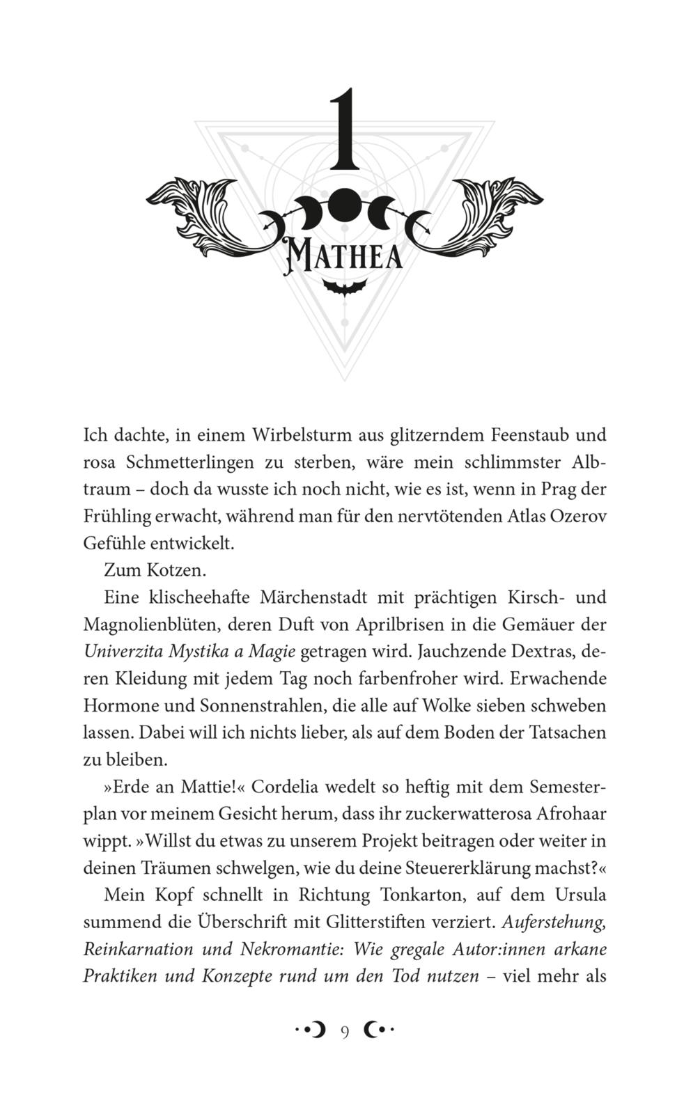 Mit dem Start des neuen Semesters tauchen Mathea und Ellie noch tiefer in die verborgene Welt der Hellen und Dunklen Magie ein. Unterstützung erfahren sie dabei durch Atlas und Astra. Allerdings lässt die Nähe sie nicht nur mit verbotenen Gefühlen ringen - sondern auch mit gefährlichen Kräften. All das rückt in den Hintergrund, als die geheimnisvollen Wächter Jagd auf Mathea machen. Der seltsame Fluch war erst der Anfang - und die düsteren Absichten der Wächter stehen und fallen mit der magischen Verbindung zwischen Mathea und Ellie. Sollten sie das Netz aus Intrigen und den Geheimnissen der Vergangenheit nicht lösen, steht deutlich mehr auf dem Spiel als ihr Leben.