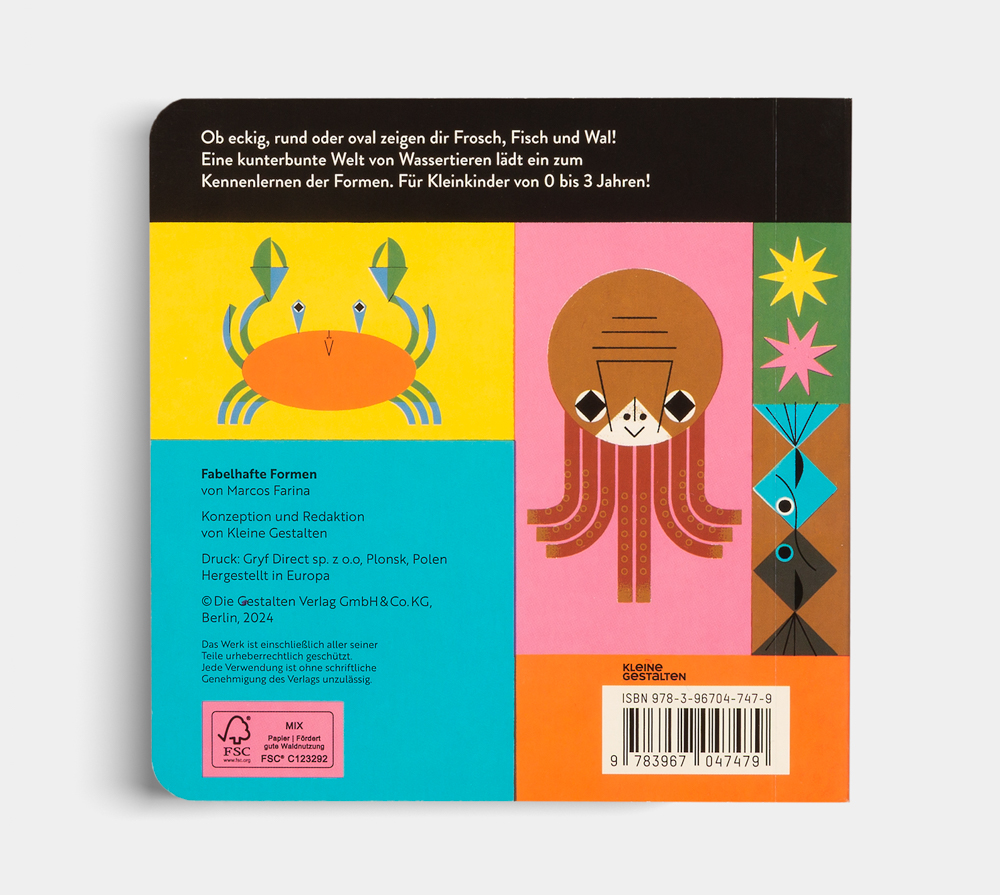 Vom Frosch bis zum Seestern – in diesem Pappenbuch bringen kunterbunte Wassertiere kleinen Kindern spielerisch die Formen bei.