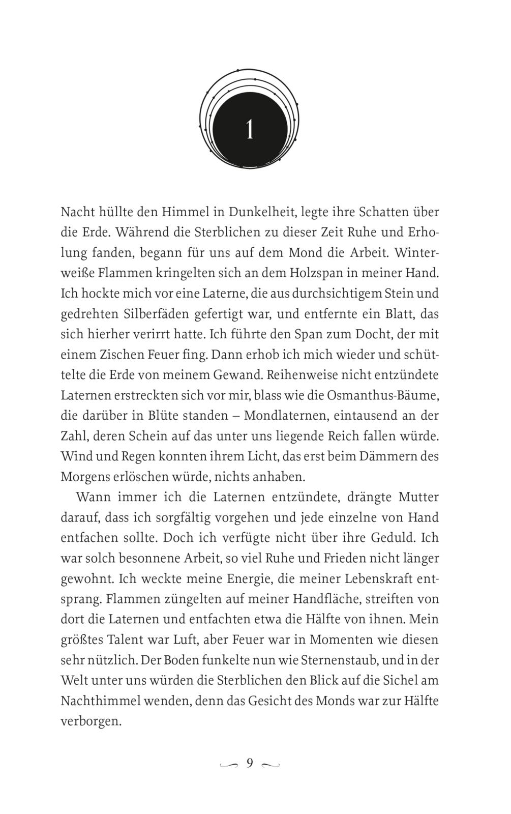 Nachdem Xingyin ihre Mutter, die Mondgöttin, befreit hat, kehren beide nach Hause zurück. Doch die Ruhe und der Frieden sind trügerisch, denn der Himmlische Kaiser verfolgt seinen Machtanspruch mit harter Hand, und schon bald muss Xingyin den Mond erneut verlassen. Zusammen mit ihren Gefährt*innen bricht sie auf in unbekannte Länder, wo sie sagenumwobenen Geschöpfen, kampfbereiten Königen, lieb gewonnenen Freunden und erbitterten Feinden begegnet. Xingyin hat keine Wahl, sie muss sich dem Bösen entgegenstellen, ehe es alles zerstört, was sie liebt, auch wenn der Preis dafür unerträglich scheint.