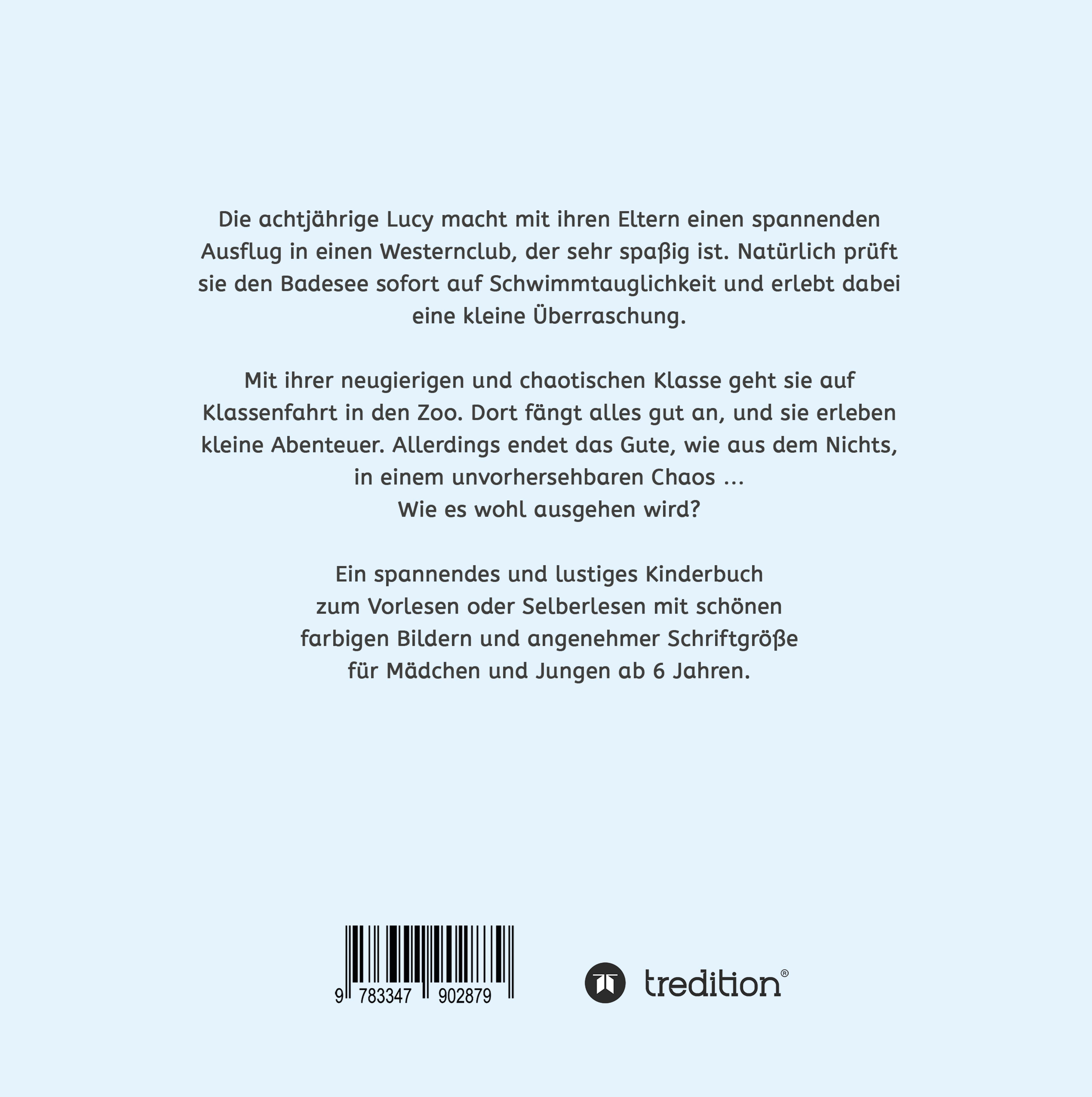 Die achtjährige Lucy macht mit ihren Eltern einen spannenden Ausflug in einen Westernclub, der sehr spaßig ist. Natürlich prüft sie den Badesee sofort auf Schwimmtauglichkeit und erlebt dabei eine kleine Überraschung. Mit ihrer neugierigen und chaotischen Klasse geht sie auf Klassenfahrt in den Zoo. Dort fängt alles gut an und sie erleben kleine Abenteuer. Allerdings endet das Gute, wie aus dem Nichts, in einem unvorhersehbaren Chaos... Wie es wohl ausgehen wird?