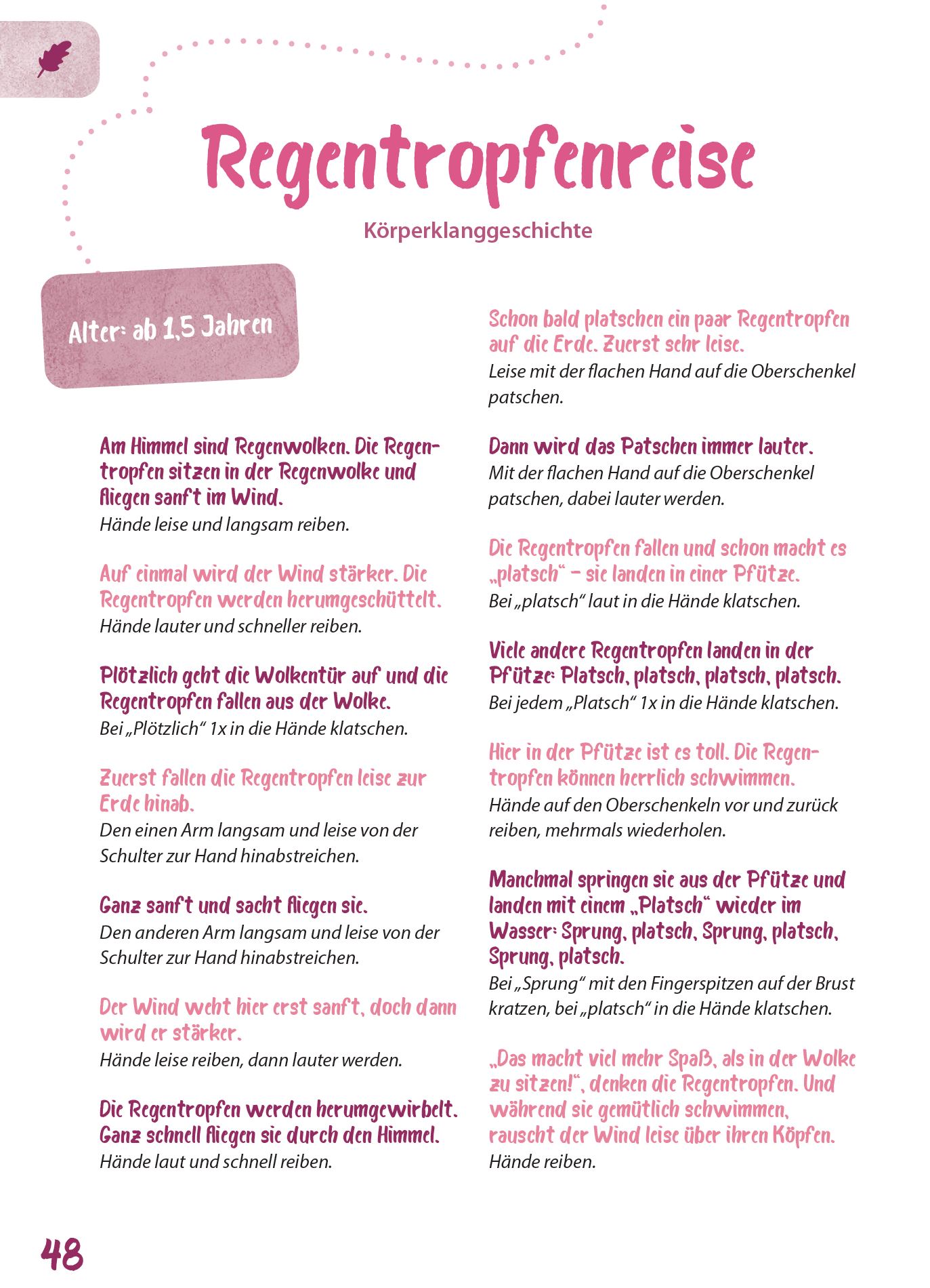Kinder lieben es, Geschichten zu hören, verschiedene Klänge zu erforschen und mit ihnenzu experimentieren. Tauchen Sie ein in die wunderbare Welt der Klanggeschichten und Klanggedichte! Nutzen Sie gemeinsam mit den Kindern verschiedene Natur- und Alltagsmaterialien und Orff-Instrumente, oder lassen Sie sich davon begeistern, was der eigene Körper für Musik machen kann.Erleben Sie im Frühling die kleine Geschichte der Osterhasen Hoppel und Happel oder gehen Sie im Sommer gemeinsam mit den Kindern auf den Tanz im Feendorf. Oder wie wäre es mit einer Regentropfenreise im Herbst und einem Wildschweinrennen im Winter? Für jede Jahreszeit ist die passende Klanggeschichte dabei!