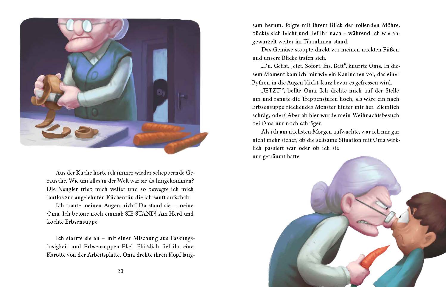 Weihnachten bei der langweiligen Oma? Darauf hat der 7-jährige Rudi überhaupt keine Lust. Er will lieber herausfinden, wer denn jetzt wirklich die Geschenke bringt - das Christkind oder der Weihnachtsmann? Als er sich auf Spurensuche begibt, entdeckt er unter Omas Weihnachtsbaum ein gruseliges Ungetüm. Und Oma, die auf einmal gar nicht mehr so langweilig ist, scheint genau zu wissen, was vor sich geht. Gemeinsam begeben sie sich auf eine abenteuerliche Rettungsmission.