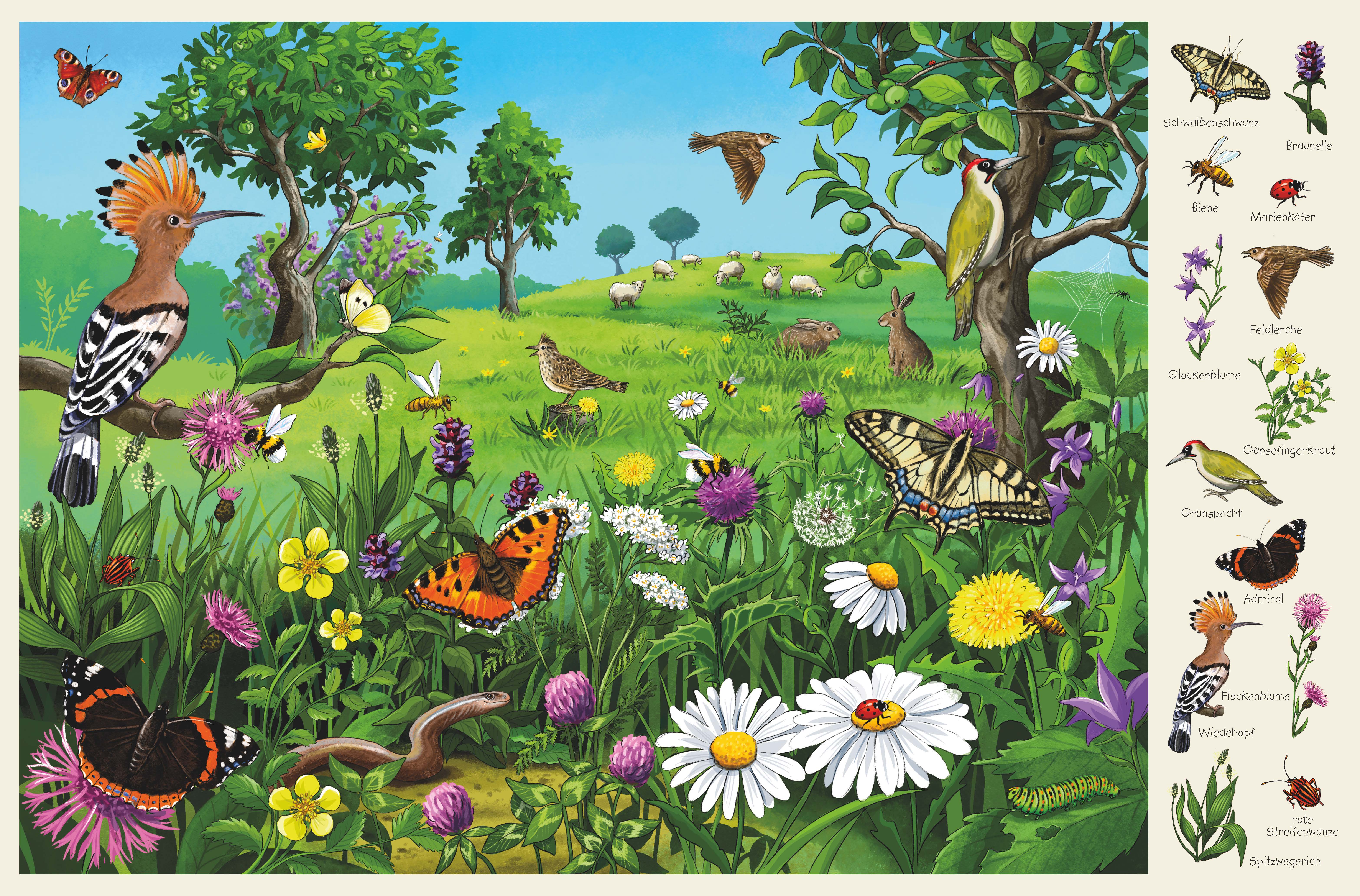 Komm mit nach draußen in die Natur: Welche Käfer krabbeln auf dem Waldboden? Wer hoppelt über die Wiese? Und welche Vögel singen und zwitschern im Garten?In farbenfrohen Wimmelbildern begegnest du vielen spannenden Tieren, die bei uns leben. Von scheuen Waldtieren, über bunte Singvögel bis hin zu seltenen Tieren im Bach.Auf der Bild-Leiste neben dem Wimmelbild werden viele Tiere und Pflanzen genauer benannt. Am Ende des Buches gibt es Suchaufgaben und Informationen zu verschiedenen Tieren: Findest du die Bilder im Buch?Ein Buch für kleine Naturfreunde.-Ein Wimmelbuch mit Tieren, Vögeln, Pflanzen und Insekten, die im Wald leben, für Kinder ab 3 Jahren-Die heimische Umwelt und Natur auf der Wiese und am Bach entdecken-Großformatige, bunte Wimmelbilder, ideal auch für den Kindergarten