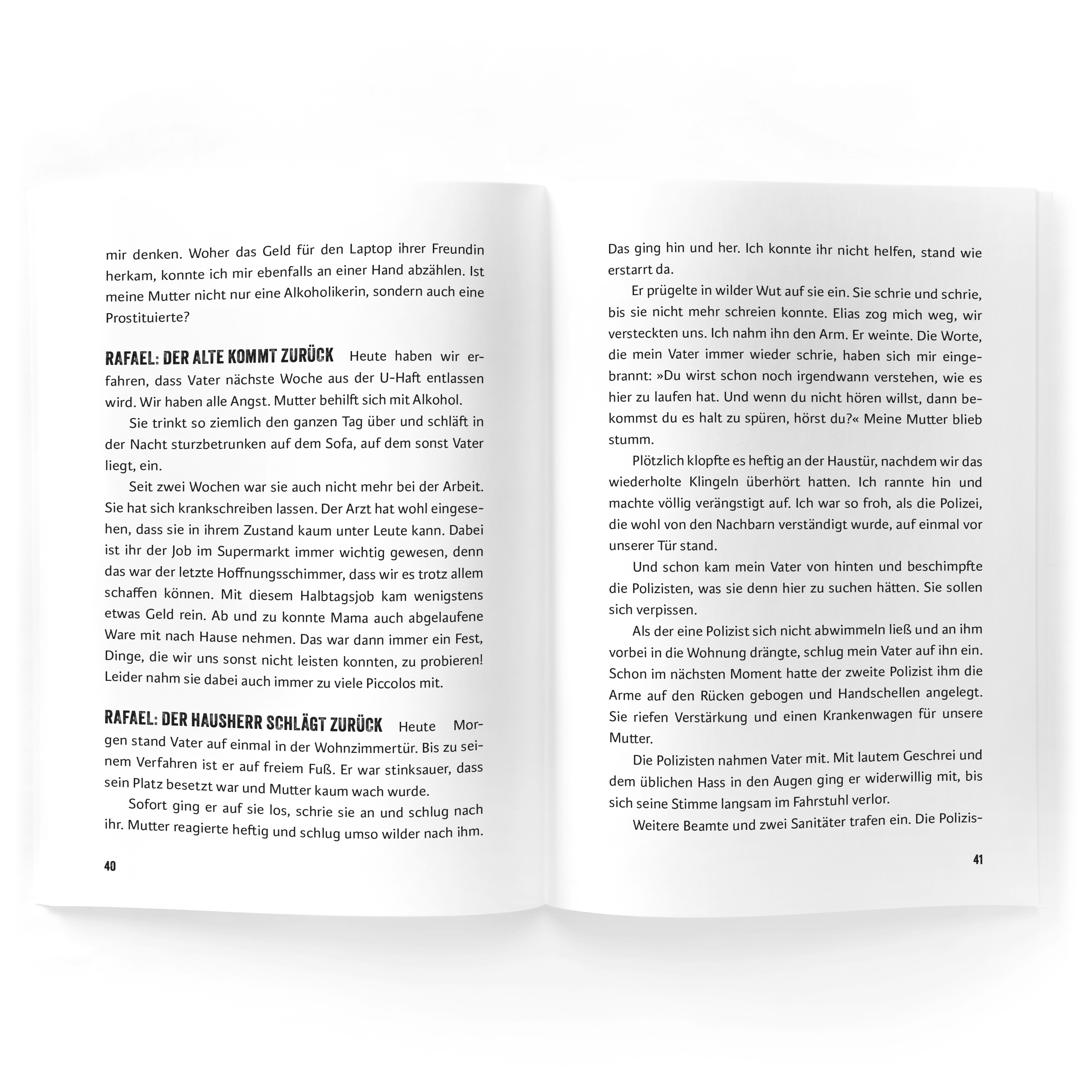 | Schlagworte | Alkoholismus • Alkoholprävention • Aufklärung • Berufswahl • Corona • Daniel Gebhard • Daniel Gebhart • Daniel Gehrart • Daniel Gerhard • Daniel Gerhart • Dani Gebhart • Danile Gebhart • Drogen • Drogenprävention • Erfahrung • Familie • Fussballprofi • Geschichte • Hilfe • Hoffnung • Identität • Jugendliche • Kinder • Kindesmisshandlung • Krise • Liebe • lockdown • nachfolgeband • Prävention • Roman • Schule • Strassenstaub • Sucht • Suchtprävention • Träume • Veränderung • vergessene Kinder • Verwarlosung • Ziele • Zukunft • Zusammenhalt • zweiter Teil |