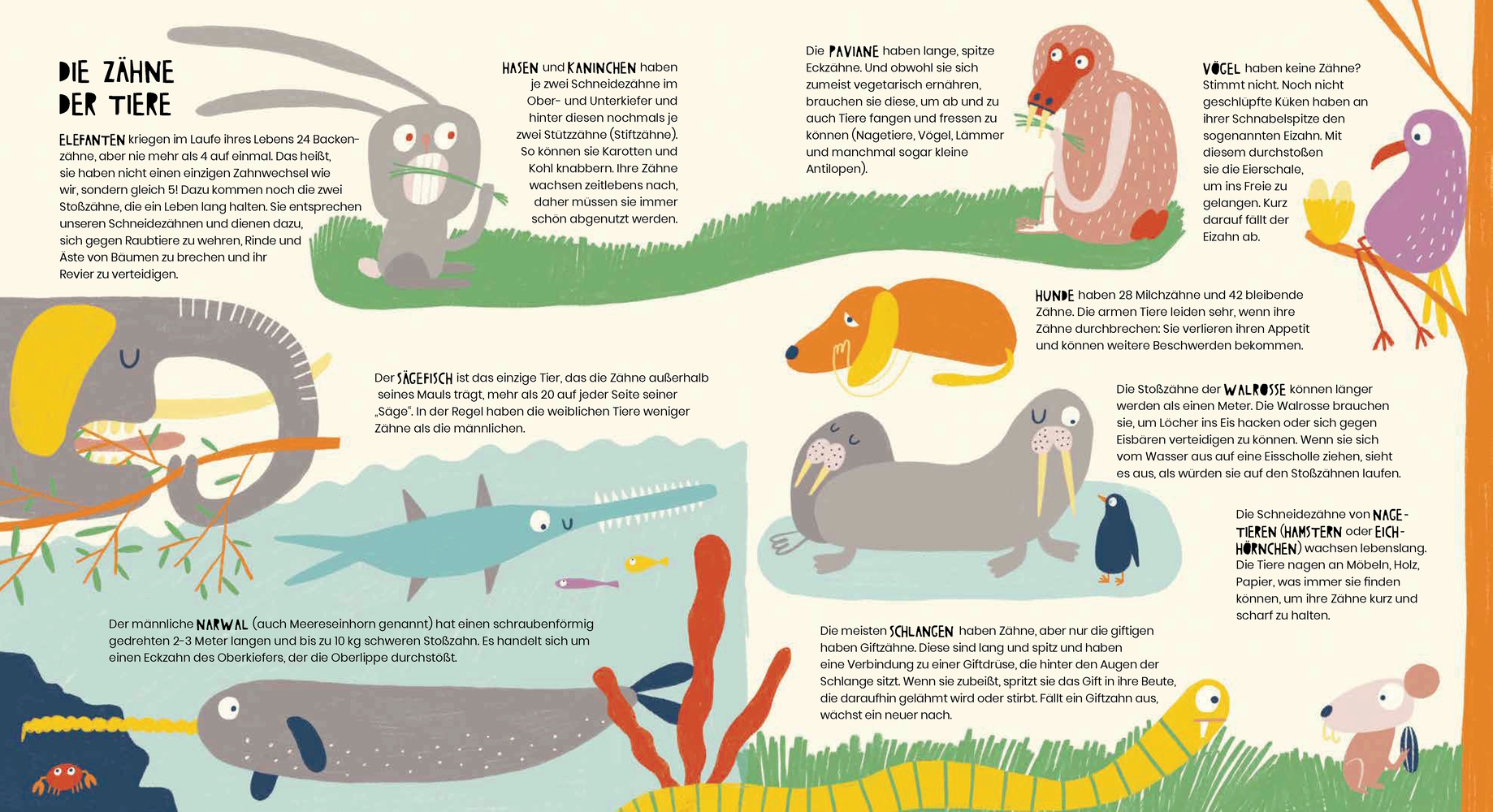 Zähne sind richtig harte Kerle: Zahnschmelz ist eines der härtesten Materialien in unserem Körper, sogar fester als Knochen! Aber warum müssen wir dann so oft die Zähne putzen? Wozu gibt es Milchzähne, wenn sie sowieso wieder ausfallen? Warum tun sie manchmal weh, wenn wir Eis essen? Und was ist dran an der Geschichte mit der Zahnfee? In diesem Kindersachbuch erfahren Kinder alles über die Zähne in ihrem Mund und sogar kuriose Fakten über die Zähne in der Tierwelt. Witzige Wahr- oder Falsch-Fragen runden das Leseabenteuer ab und auch Erwachsene werden garantiert noch das ein oder andere dazu lernen.