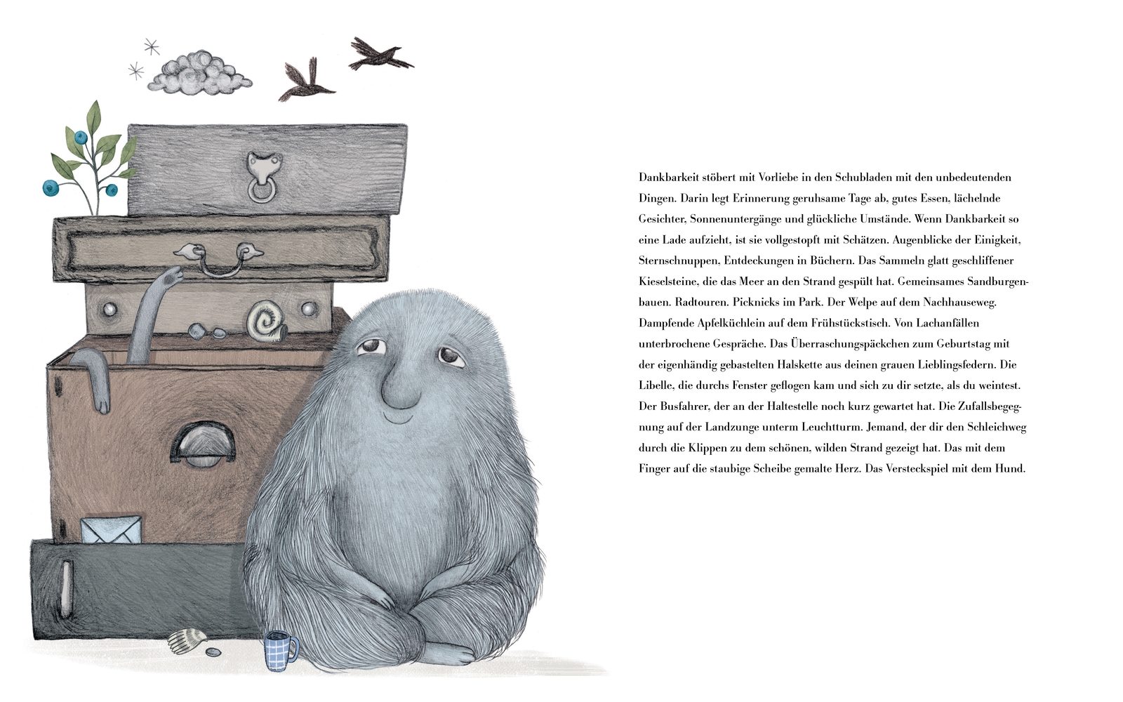 Klein, pummelig, flauschig, langohrig, mit Augen wie Perlen: Was sind denn das für Kreaturen? Unsere Gefühle machen manchmal komische Sachen, aber wenn man genauer hinschaut, erklärt sich einem vieles: Die Geduld kocht Marmelade ein, die Neugier spricht mit der Angst unter dem Kleiderschrank, die Sturheit bleibt irgendwo stecken, die Dankbarkeit geht mit einer Tasse heißem Kakao durch die Korridore der Erinnerung und Bosheit braut mal wieder einen giftigen Trank. In diesem bezaubernden Bilderbuch lernen Kinder ihre Gefühle auf eine ganz einzigartige und zugängliche Weise kennen und lernen sie dadurch besser zu verstehen.