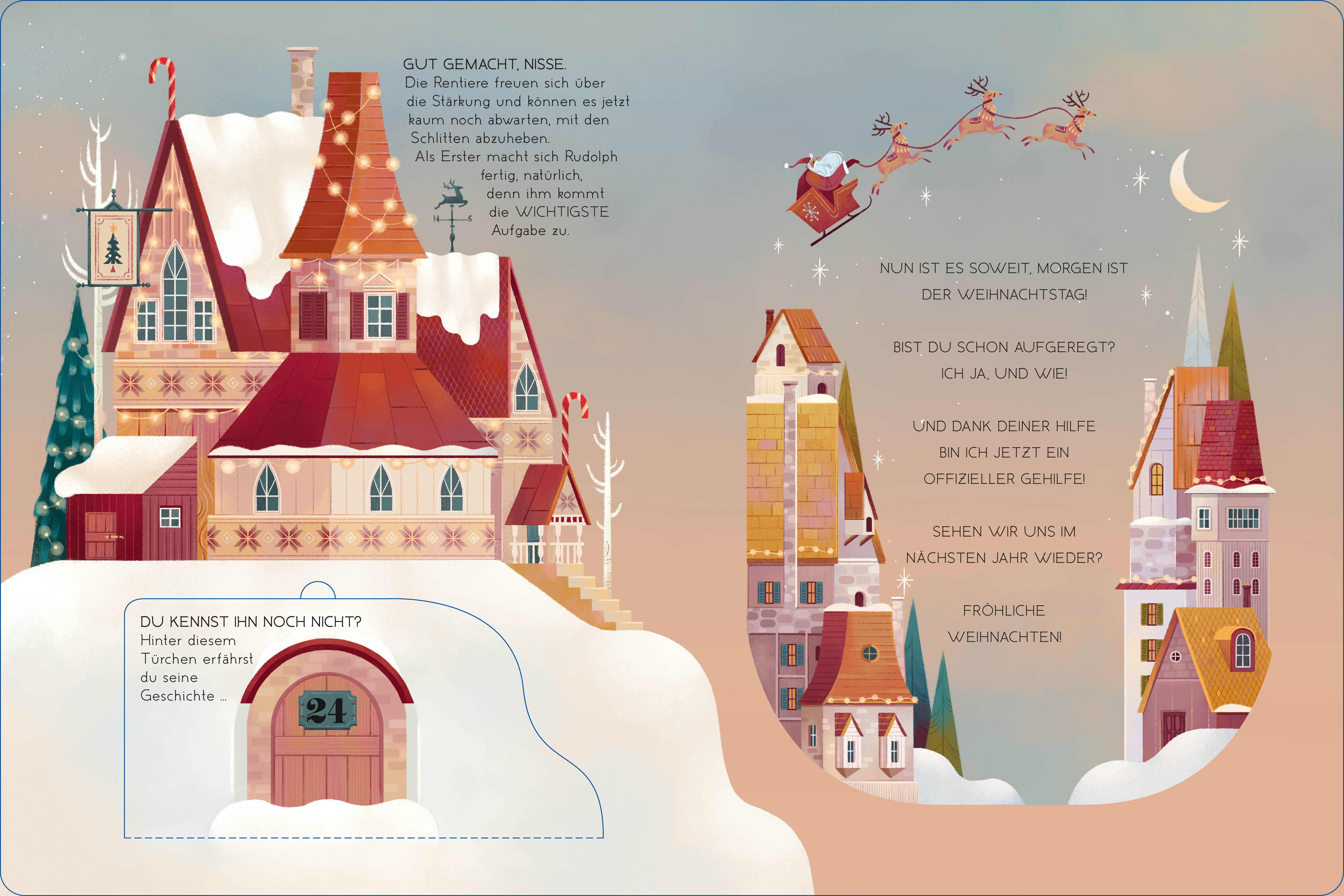 Du kannst Weihnachten kaum erwarten? Du möchtest die Zeit bis zum großen Fest abwechslungsreich verkürzen? Dann lass dich von Noel, dem Weihnachtself, durch das Dorf des Weihnachtsmanns führen. Außerdem erwartet dich in diesem einzigartigen Advents- und Weihnachtsbuch ein wunderbarer Adventsschatz: Vom 1. bis zum 24. Dezember kannst du hinter jedem Türchen weihnachtliche Aktivitäten entdecken wie Bastelideen für Riesenschneeflocken, das Rezept für einen Lebkuchenmann mit Zimt oder Spiele wie Tic-Tac-Toe. Für noch mehr Zauber ist das Adventskalenderbuch mit einer Spotify-Playlist verknüpft zum Mitsingen oder Anhören weihnachtlicher Soundtracks.