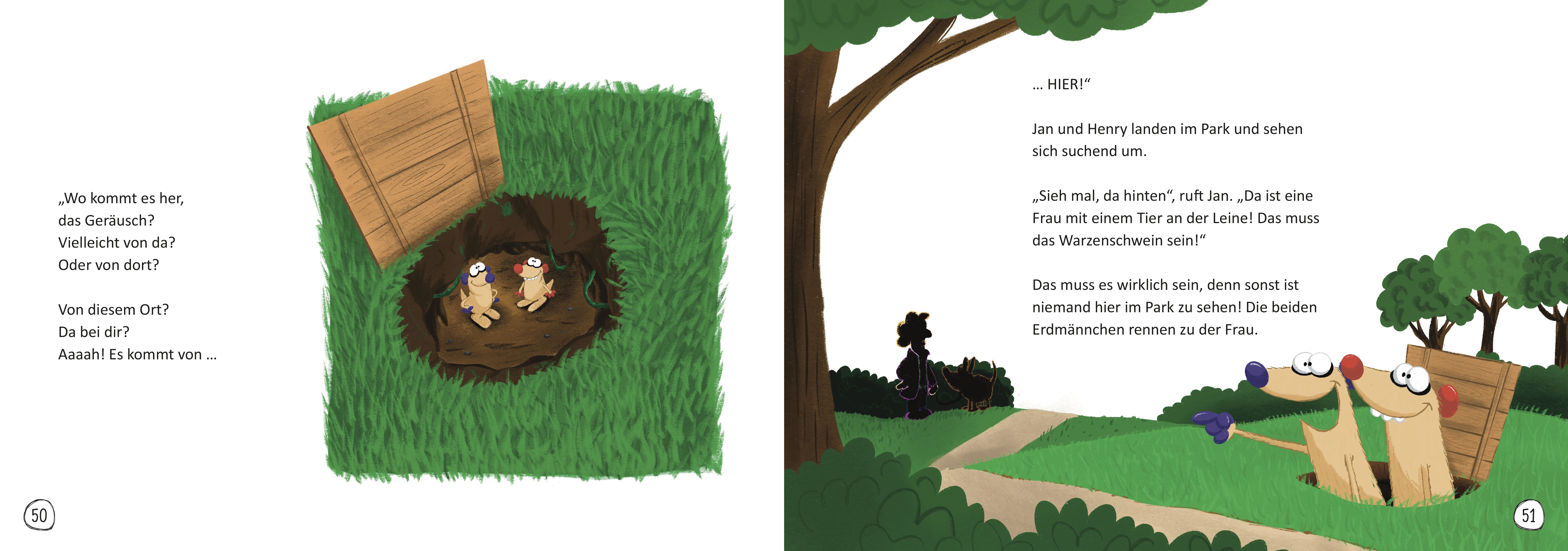 "Klock! Raschel! Kracks!" Für Jan und Henry ist es wieder einmal Zeit, ins Bett zu gehen. Doch Abend für Abend hält sie ein merkwürdiges Geräusch vom Schlafen ab. Was raschelt, klopft und klimpert denn da in der Dunkelheit? Steckt tatsächlich ein geschminktes Warzenschwein dahinter? Oder eine Giraffe am Computer? Dem müssen die beiden Erdmännchen-Brüder unbedingt auf den Grund gehen, und so erleben sie an jedem Wochentag ein neues lustiges Abenteuer.