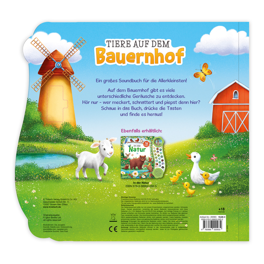 | Schlagworte | Anhören • Anschauen • Bauernhof • Bauernhoftiere • Beschäftigung • Beschäftigungsbuch • Entdecken • Entdeckerbuch • Ente • Familienzeit • Hinhören • Huhn • Katze • Klangbuch • Kuh • Reime • Reimgeschichten • Schaf • Sound • Soundbuch • Tierstimmen • Trötsch • Trötsch Verlag • Vorlesen |