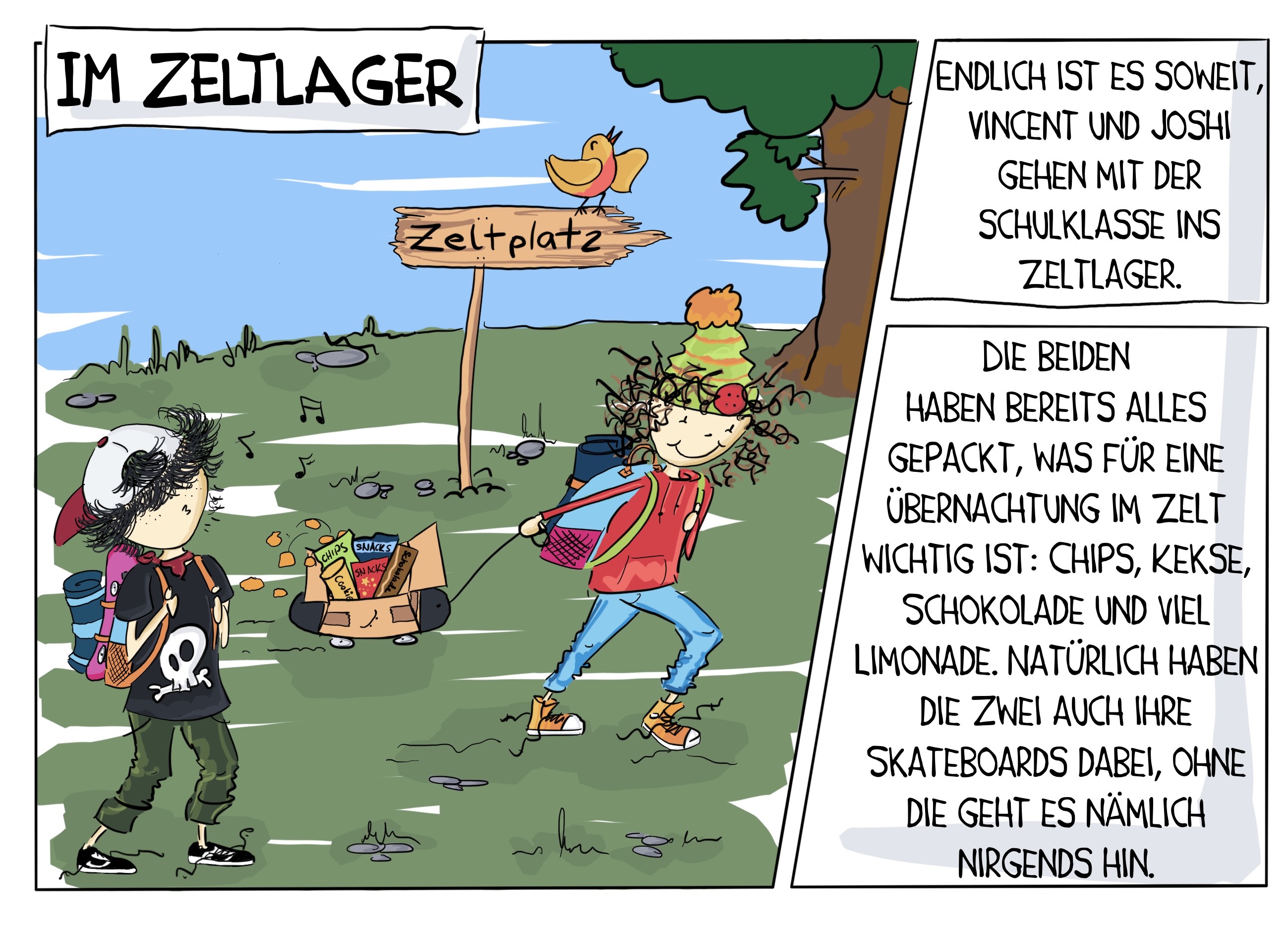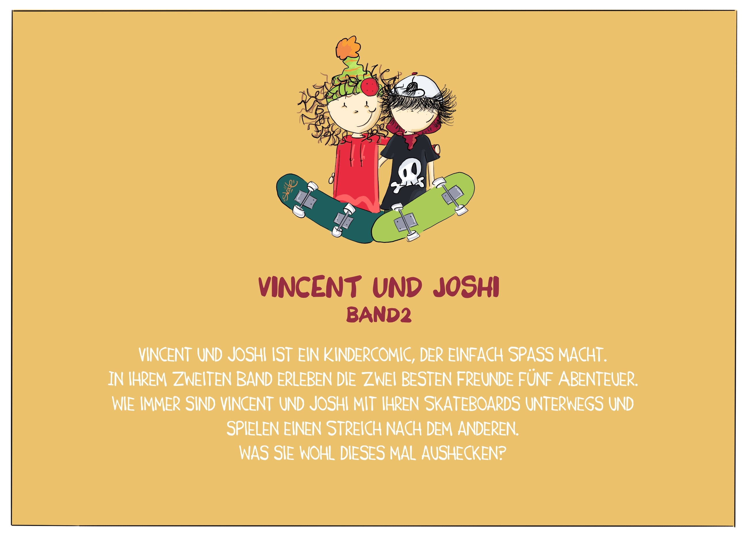 In unserem zweiten Kindercomic erleben wir wieder 5 schräge Abenteuer, die garantiert jeden Lesemuffel begeistern. Wir verwandeln die grauen Großstadt-Flächen in ein Wildblumen-Meer, treiben im Einkaufszentrum unser Unwesen und streichen unser Baumhaus. Dabei sind wir immer mit unseren Skateboards unterwegs.
