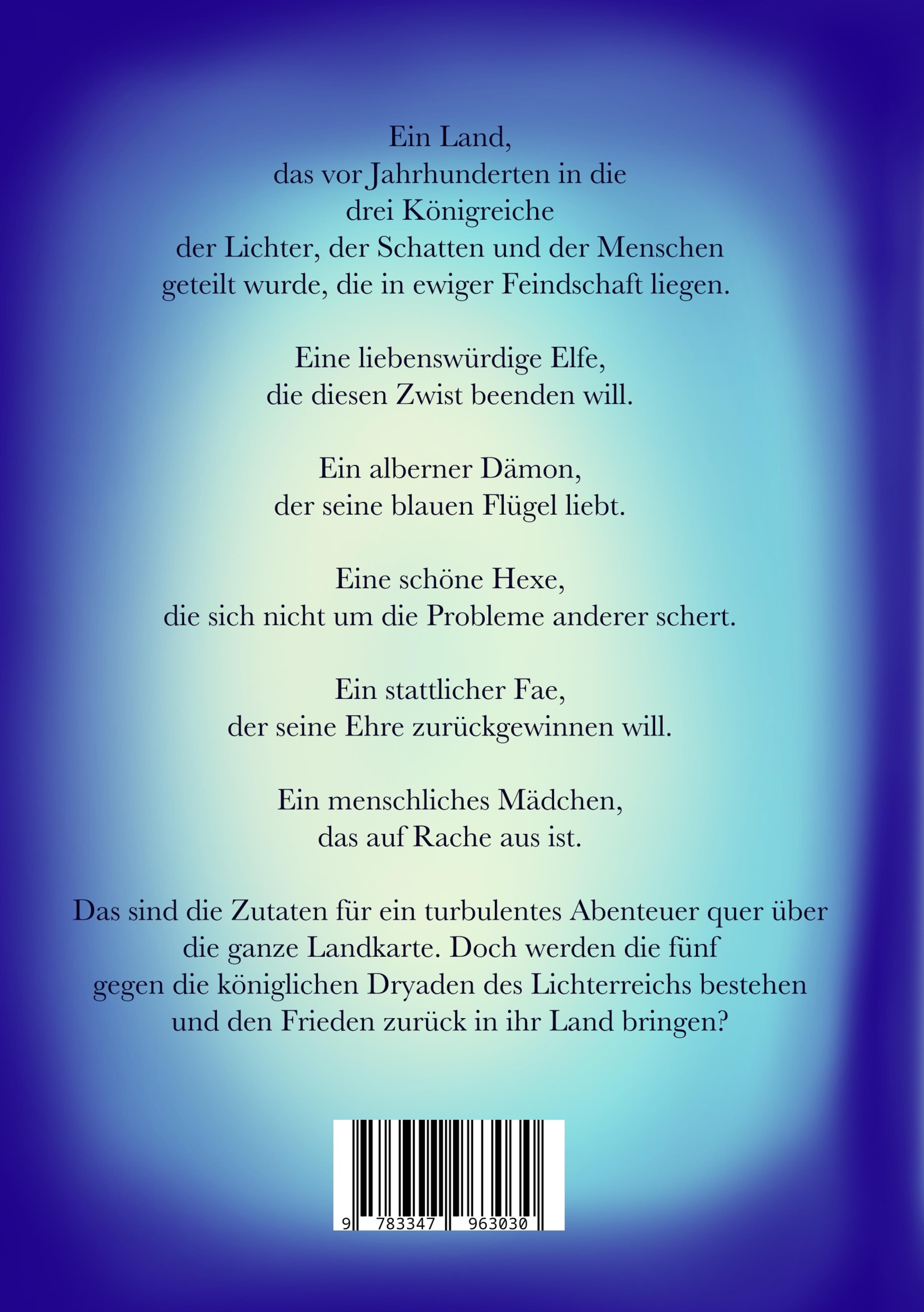 | Schlagworte | Abenteuer • Angst • Dämon • Drache • ELFA • Elfe • Fae • Fantasy • Fee • Fliegen • Flucht • Freundschaft • Geheimnis • Heilig • Hexe • Jugendlich • Kampf • Kind • König • Königreich • Krieg • Liebe • Mädchen • Magie • Mut • Palast • Prinz • Prinzessin • Reise • Tempel • Tier • Verrat • Wald • Zauber |