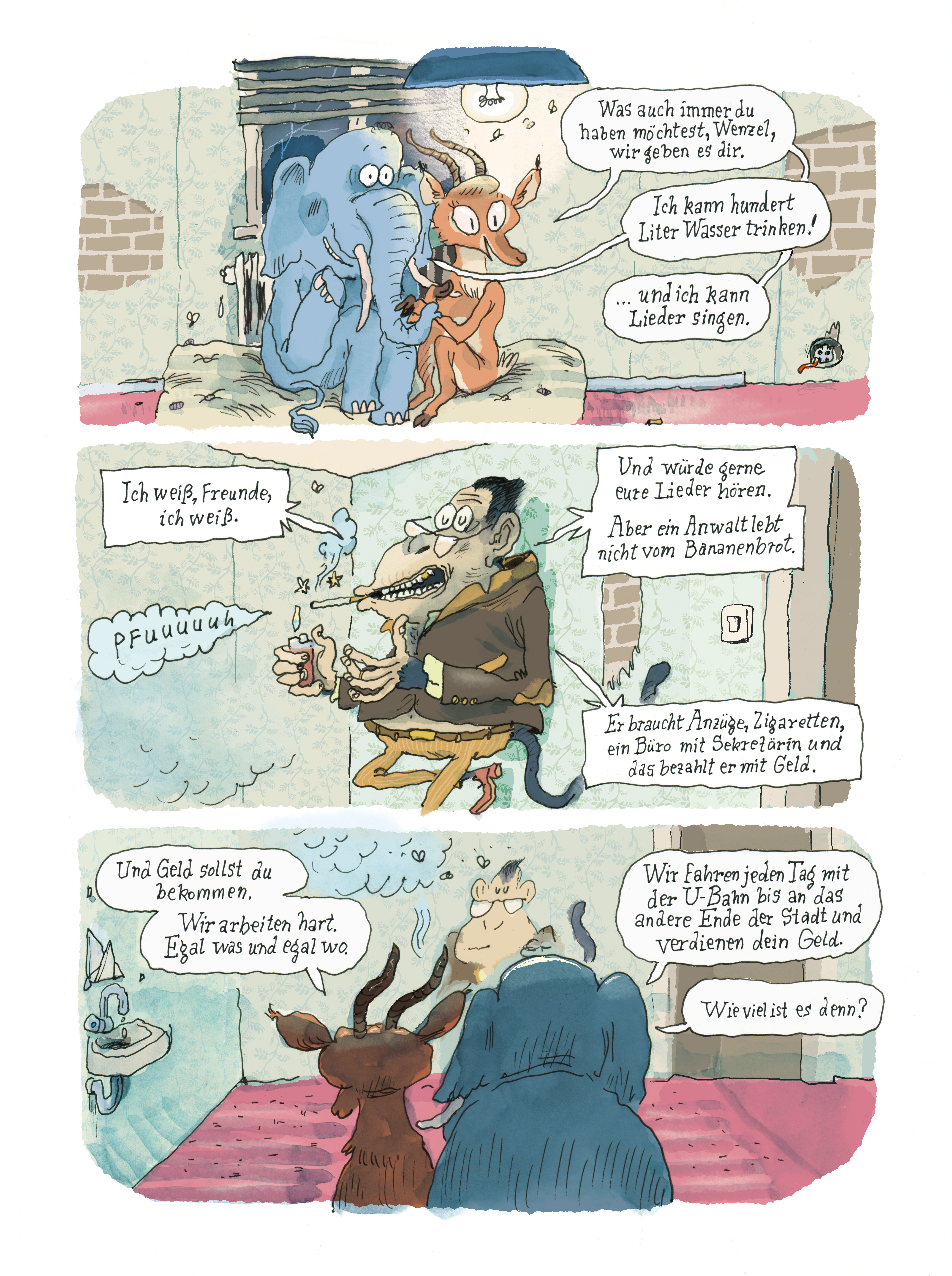 In der großen Stadt leben! Mit eigener Badewanne! Vielleicht sogar U-Bahn fahren! Um sich ihren Traum zu erfüllen, sind die Gazelle Elvira und der Elefant Horst unterwegs von Kenia nach Hamburg. Doch sie haben weder Geld noch Papiere und so droht ihr Abenteuer bereits am Flughafen von Nairobi zu enden...Noch vor Abflug gerät das Paar hier in heftige Turbulenzen. Die Welt der Menschen ist faszinierend - aber furchtbar kompliziert! Ob ein toter Löwe und ein gewieftes Chamäleon den beiden helfen können, mit einem dieser großen Vögel ans Ziel ihrer Sehnsucht zu gelangen?Die Fortsetzung des urkomischen und zugleich tiefsinnigen Abenteuers von zwei Tieren, die auszogen, um unter den Menschen zu leben.