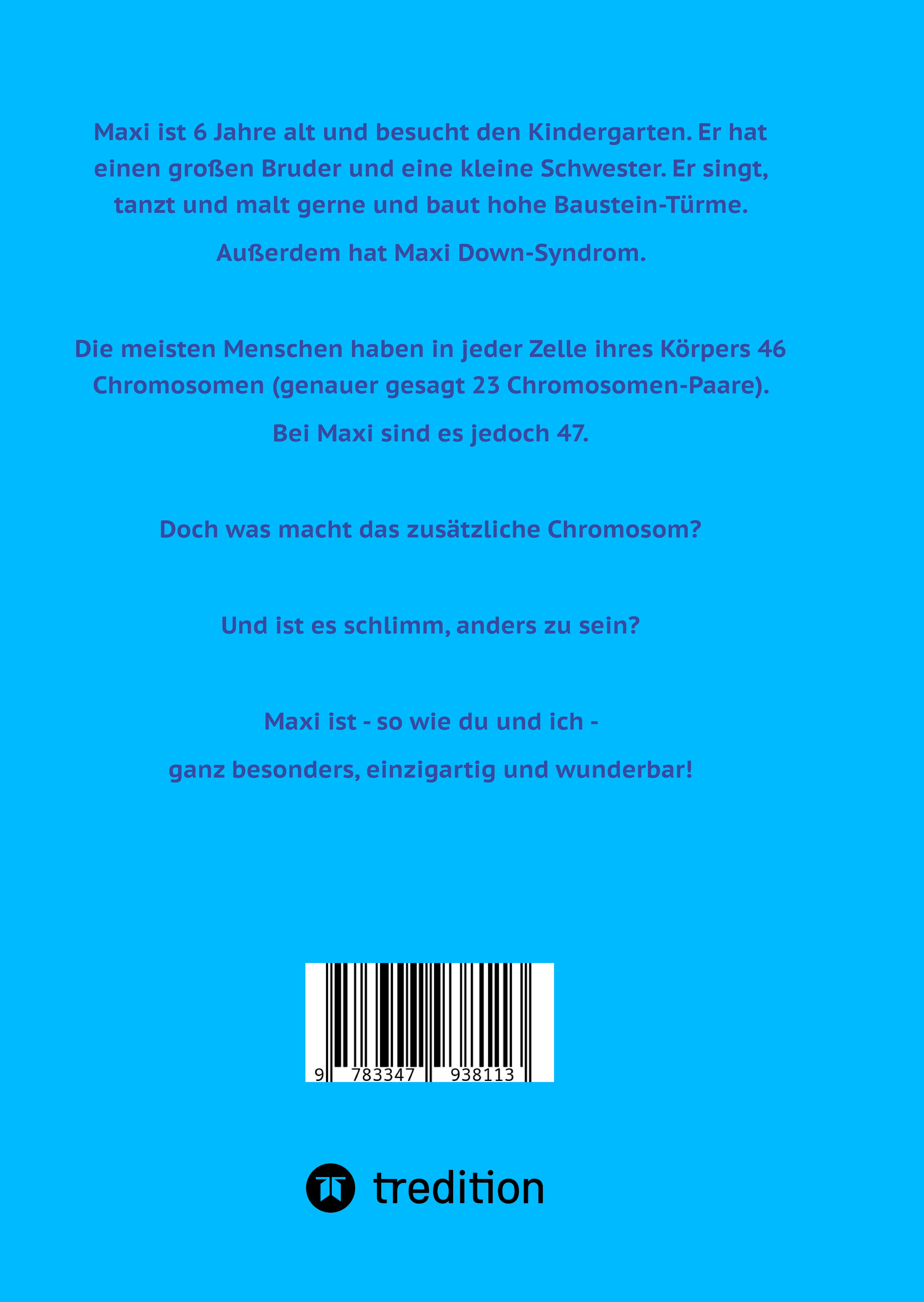 Kinder mit Behinderung werden oft an den Rand der Gesellschaft gedrängt - doch da gehören sie nicht hin.Maxi Mittendrin erzählt von Maxi, einem Buben mit Down-Syndrom. Davon, was er gerne macht, von seinen Stärken und Schwächen, seinen Therapien und seinem Alltag. Maxi ist - so wie du und ich - einzigartig, wertvoll und wunderbar!