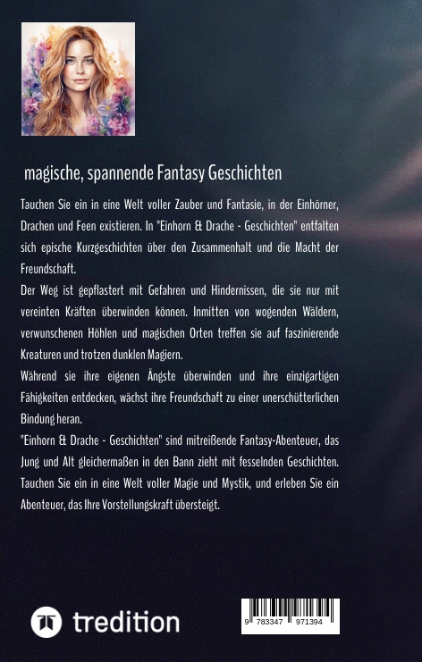 | Schlagworte | Abenteuer • actionreich • Bedeutungsvolle Botschaften • Drachen • Einhorn • Einhörner • Einzigartige Charaktere • episch • Familie • Fantasiewelt • Fantasy • Faszinierende Wesen • Fee • Feenwald • Freundschaft • Gold • Heilung • Hexe • Höhle • Inspirierend • Kampf • Kristalle • Magie • mitreißend • Mystik • Natur • spannend • Spannung • Überwindung von Ängsten • Zauberer • Zauberhafte Landschaften • Zusammenhalt |