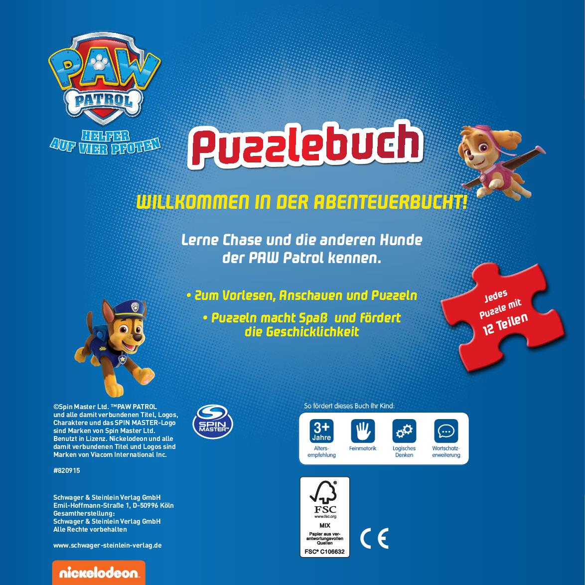 | Schlagworte | Abenteuerbucht • Adventure-Bay • Chase • Fahrzeug • Fell-Freunde • Fernsehserie • Geschichte • Hund • Kinder • Marshall • Nick • Nickelodeon • Pfoten • Polizei • puzzeln • Puzzle • Puzzlespaß • Puzzleteile • Rätsel • Rettungs-Hunde • Rubble • Ryder • Skye • Spielbuch • Spielen • Spielzeug • Vorlesebuch • Vorlesen • Zuma |