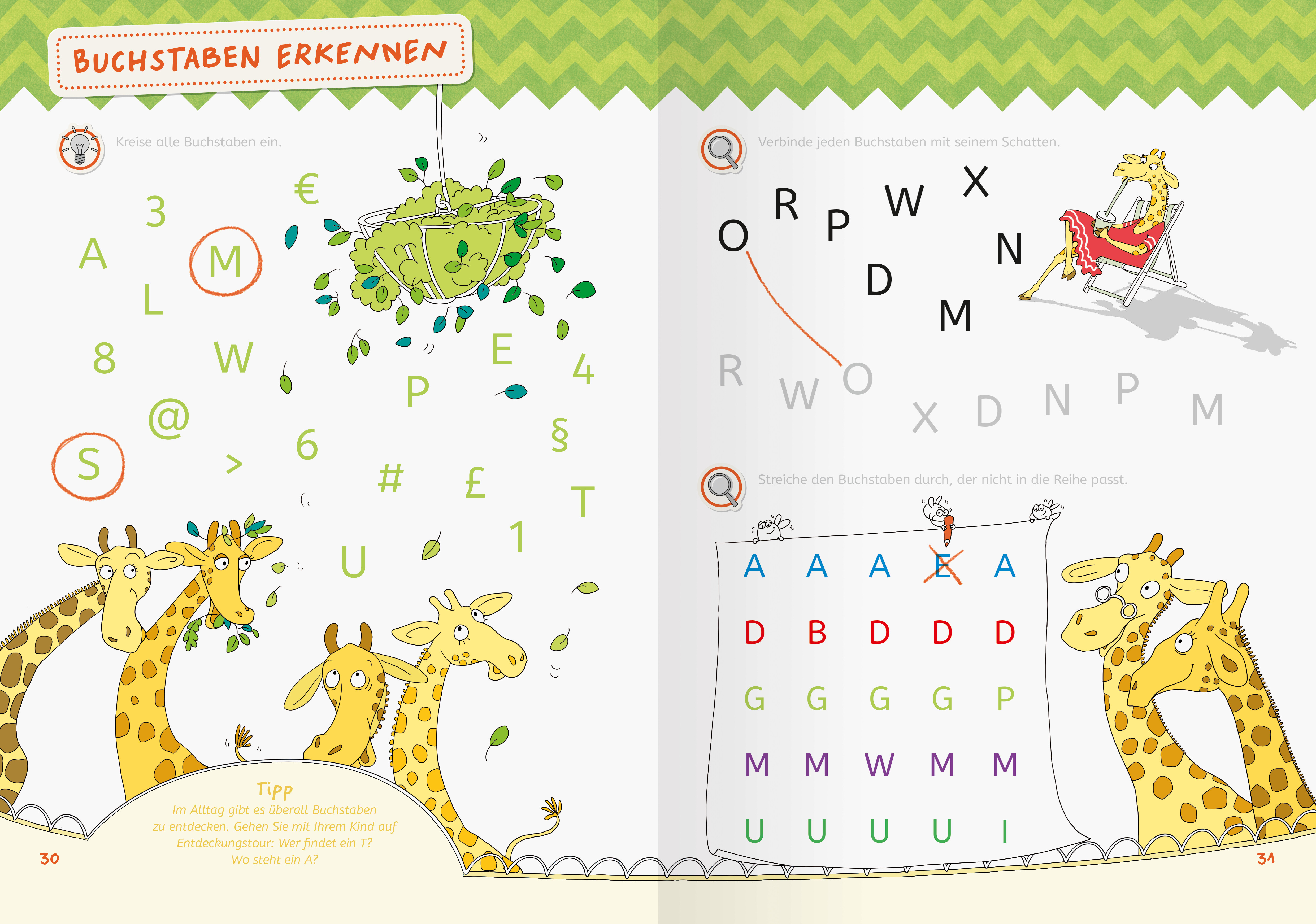 Rätsel- und Lernspaß für Vorschulkinder ab 5 Jahren zu den großen Themen Wahrnehmung, Buchstaben, Zahlen und Lesen