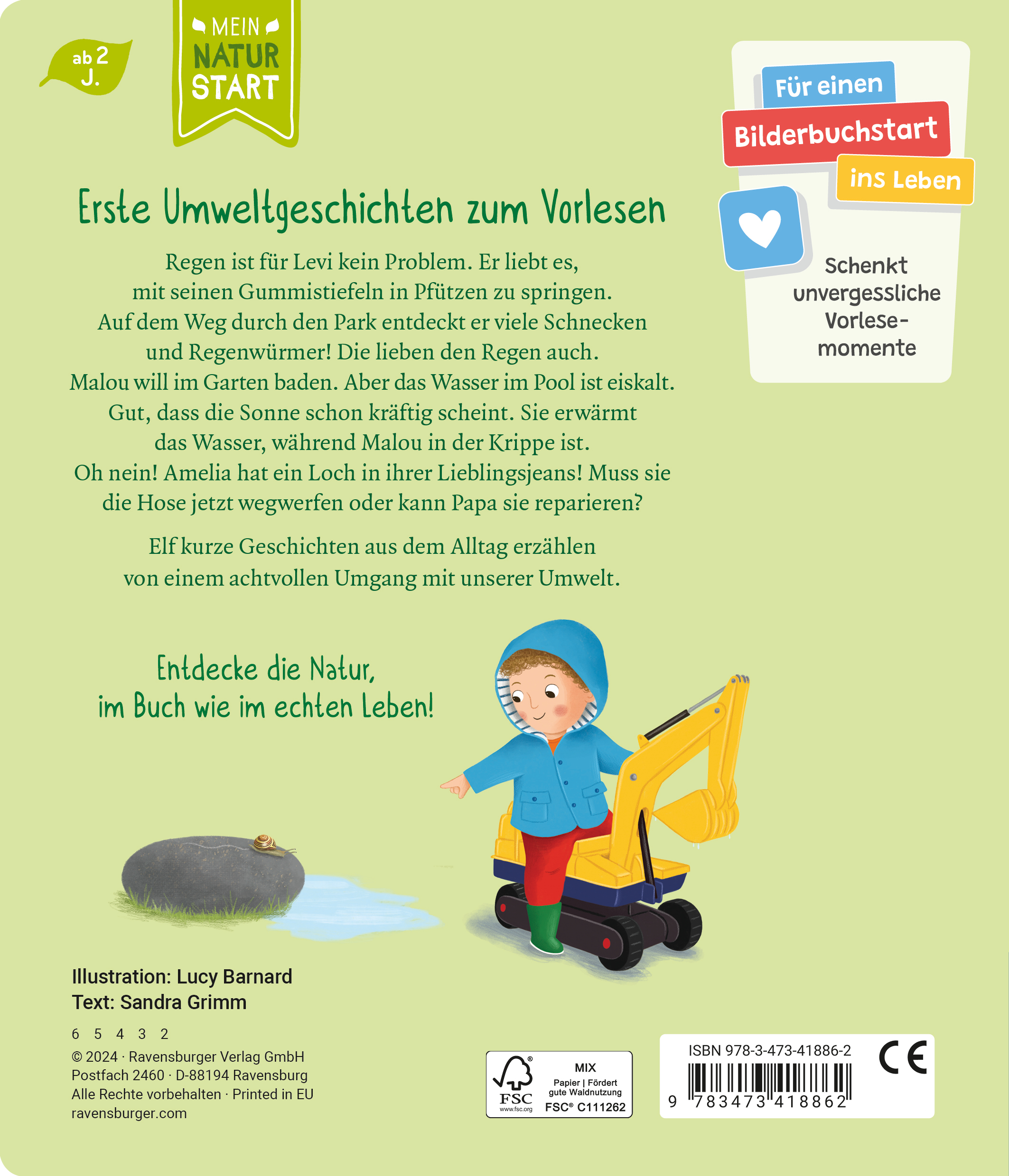 In diesem ersten Vorlesebuch für Kinder ab 2 Jahren werden 11 liebevolle Geschichten zu den Themen Natur, Umwelt und Nachhaltigkeit erzählt. Sie wecken die Neugierde auf unsere Pflanzen- und Tierwelt und sind genau auf die Bedürfnisse der Kleinen angepasst.