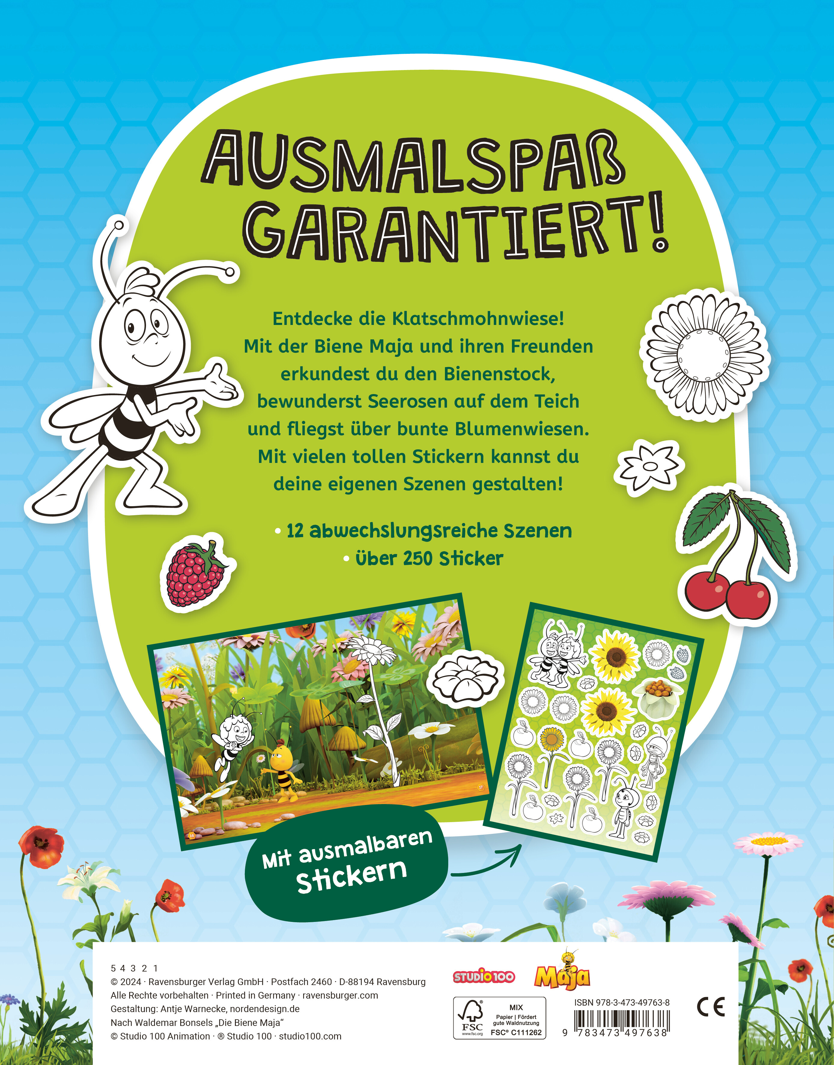 Vom Bienenstock bis zur bunten Klatschmohnwiese finden Biene-Maja-Fans in diesem Heft 12 abwechslungsreiche Szenen zum individuellen Gestalten. Mit über 250 Stickern können Kinder nach Lust und Laune kreativ sein und stickern, was das Zeug hält. DAS BESONDERE: Nicht nur die Szenen können ausgemalt werden, viele der Sticker selbst sind AUSMALBAR!