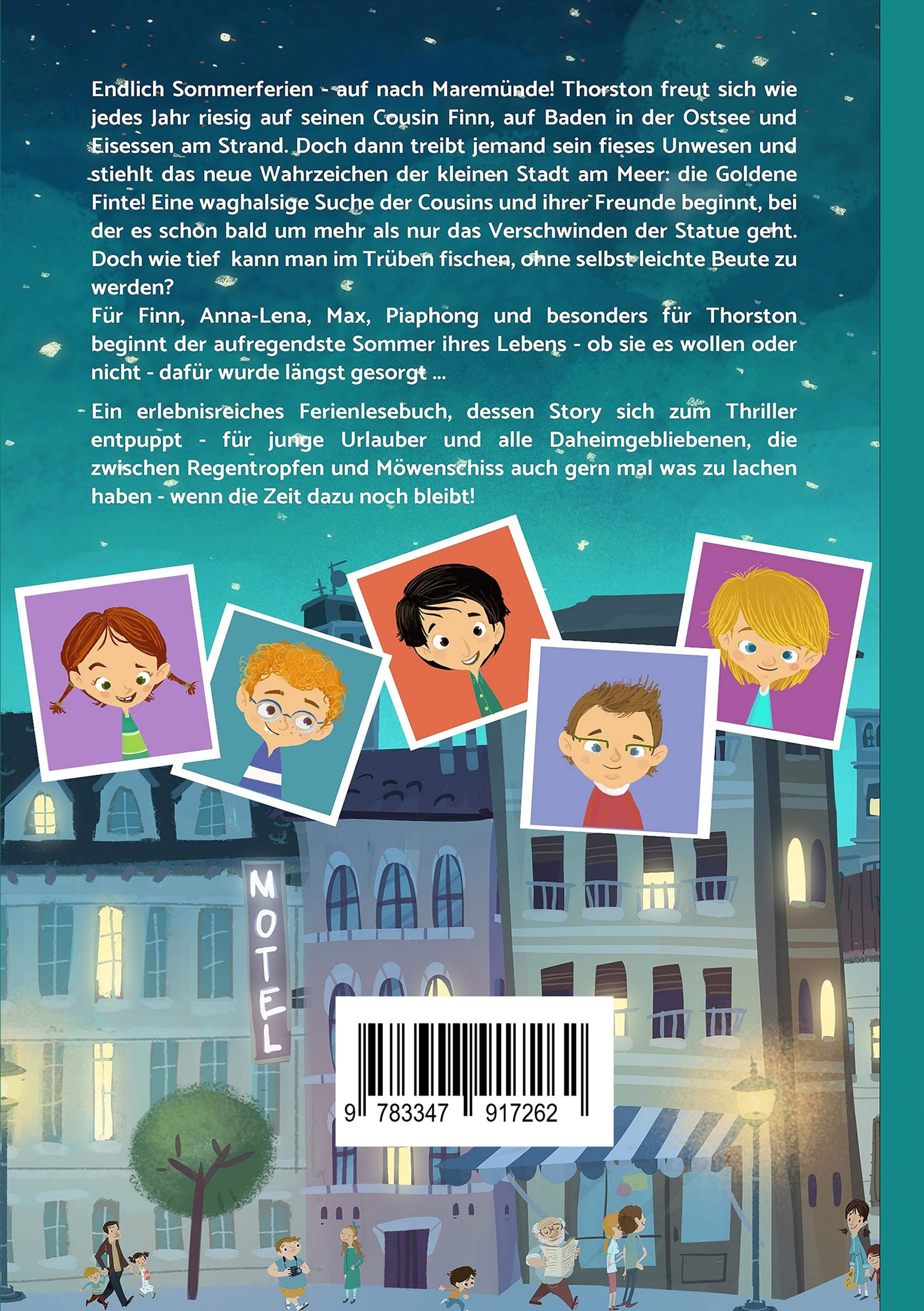 Endlich Sommerferien - auf nach Maremünde! Der zwölfjährige Thorston freut sich wie jedes Jahr riesig auf seinen Cousin Finn, auf Baden in der Ostsee und Eisessen am Strand. Doch dann treibt jemand sein fieses Unwesen und stiehlt das neue Wahrzeichen der kleinen Stadt am Meer: die Goldene Finte! Eine waghalsige Suche der Cousins und ihrer Freunde beginnt, bei der es schon bald um mehr als nur das Verschwinden der Statue geht. Doch wie tief kann man im Trüben fischen, ohne selbst leichte Beute zu werden?Für Finn, Anna-Lena, Max, Piaphong und besonders für Thorston beginnt der aufregendste Sommer ihres Lebens - ob sie es wollen oder nicht - dafür wurde längst gesorgt ...Ein erlebnisreiches Ferienlesebuch, dessen Story sich nach und nach als Thriller entpuppt - für junge Urlauber und alle Daheimgebliebenen, die zwischen Regentropfen und Möwenschiss auch gern mal was zu lachen haben - wenn die Zeit dazu noch bleibt!