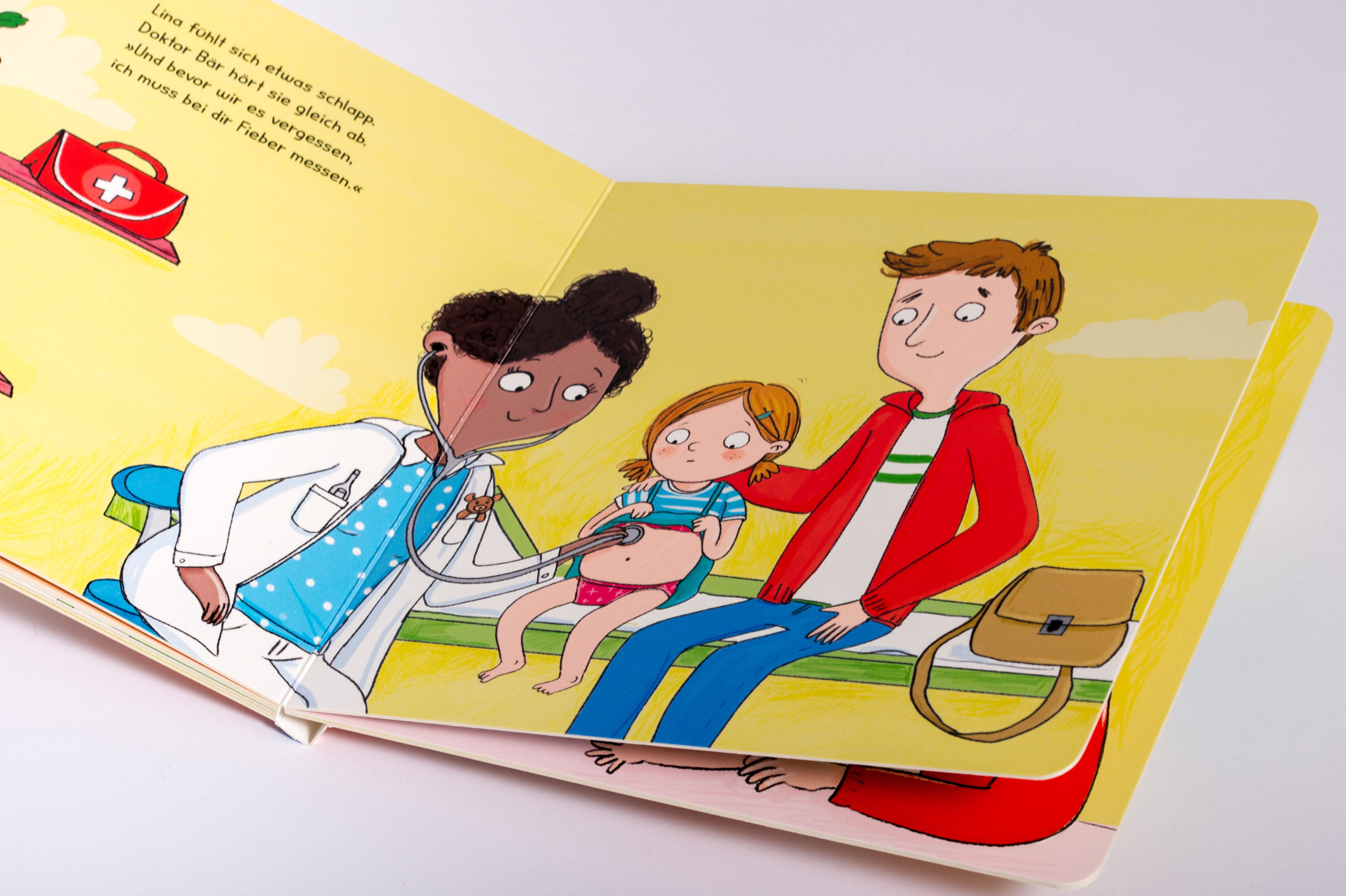 Ein fröhliches Pappbilderbuch für Kinder ab 2 Jahren, das die Angst vorm Arztbesuch nimmt- Bereitet Kinder spielerisch auf die Vorsorgeuntersuchung vor
