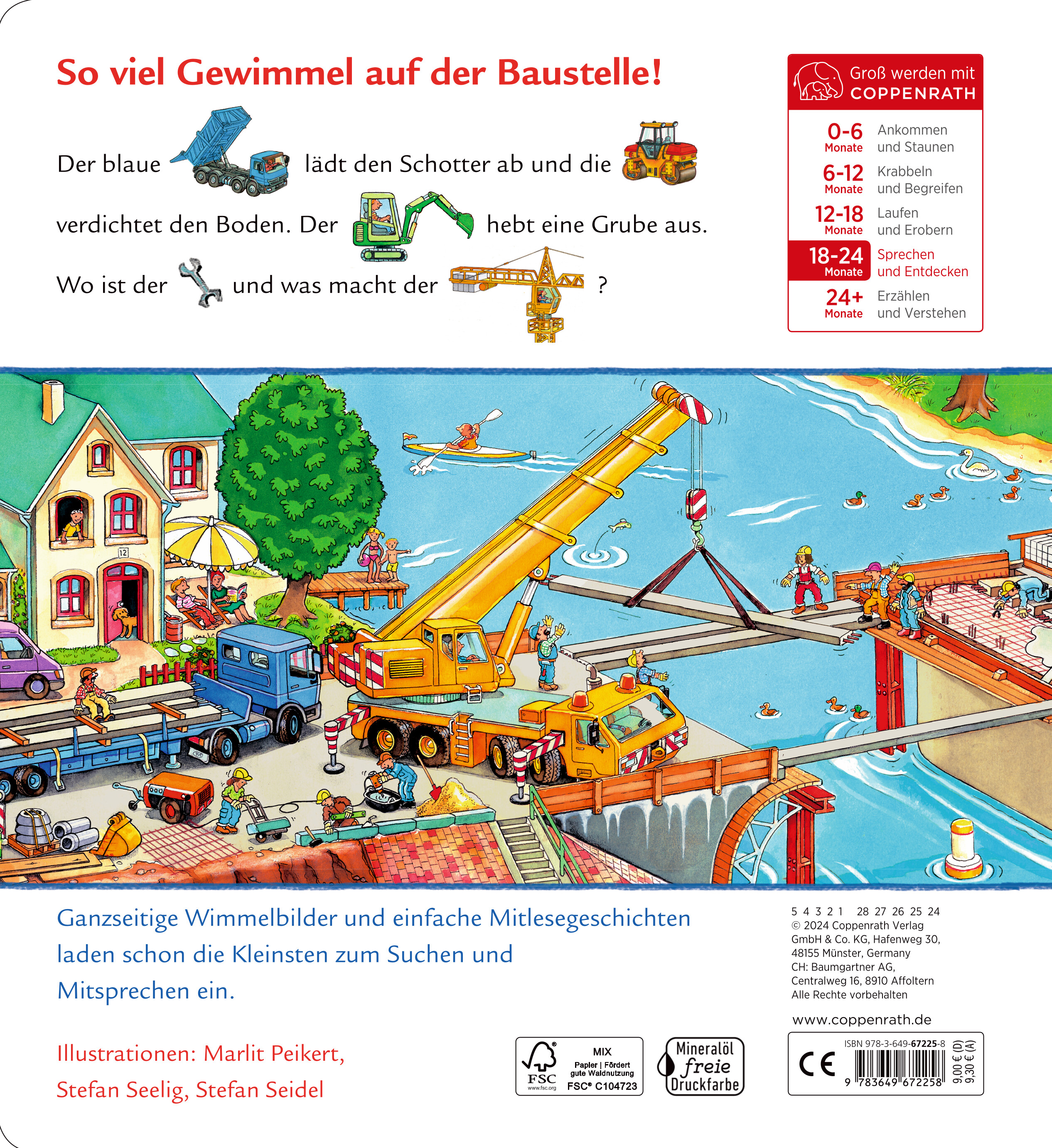 | Schlagworte | Baustelle • Entdecken • Fahrzeuge • Lesen mit Bildern • Suchen • Vorlesen • Wimmelbuch |