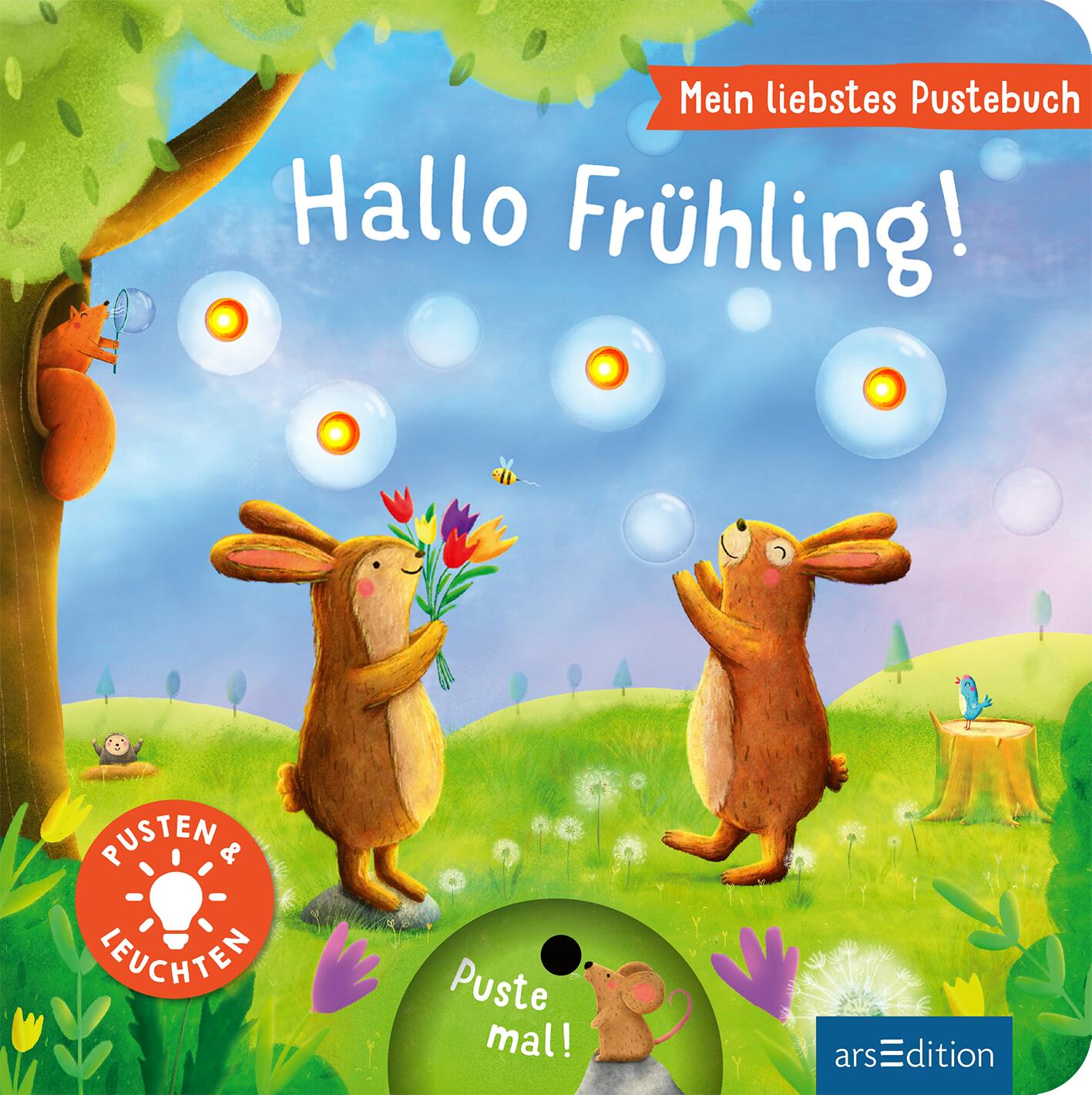Der Frühling ist da! Die kleinen Tiere freuen sich über die ersten Sonnenstrahlen des Jahres. Es summt und brummt auf der Wiese und im Wald. Der kleine Bär lässt eine Pusteblume fliegen. Die eifrigen Hasen freuen sich auf Ostern und bemalen liebevoll Ostereier. Bei einem großen Picknick im Wald findet die aufregende Ostereiersuche statt. Pustest du die kunterbunte Lichterkette für die Tiere an?
