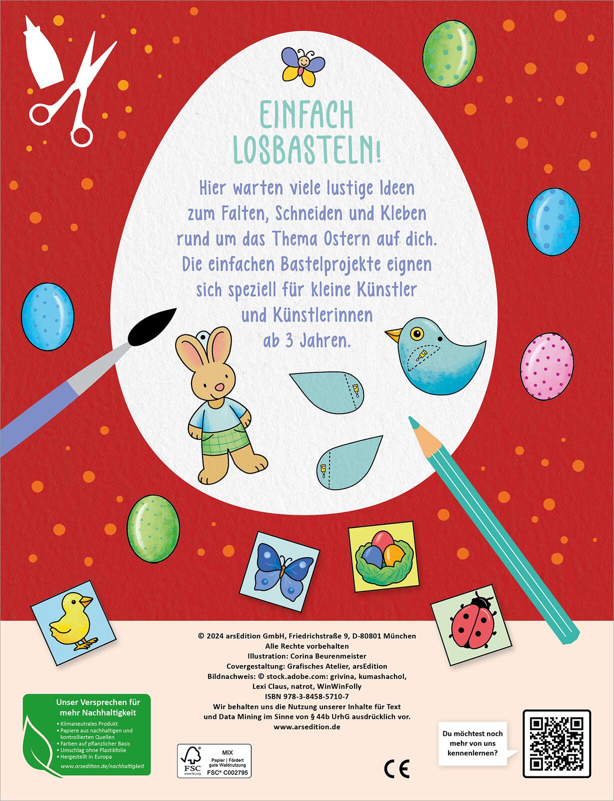 In diesem Bastelheft stecken lustige Ideen zum Falten, Schneiden und Kleben rund um das Thema Ostern. Ob Girlande, Nest oder Anhänger, alle Projekte sind ganz einfach umzusetzen. Man braucht nur eine Schere, Buntstifte und einen Klebestift und schon kann es ohne komplizierte Anleitung losgehen. Für kleine Künstler ab 3 Jahren.