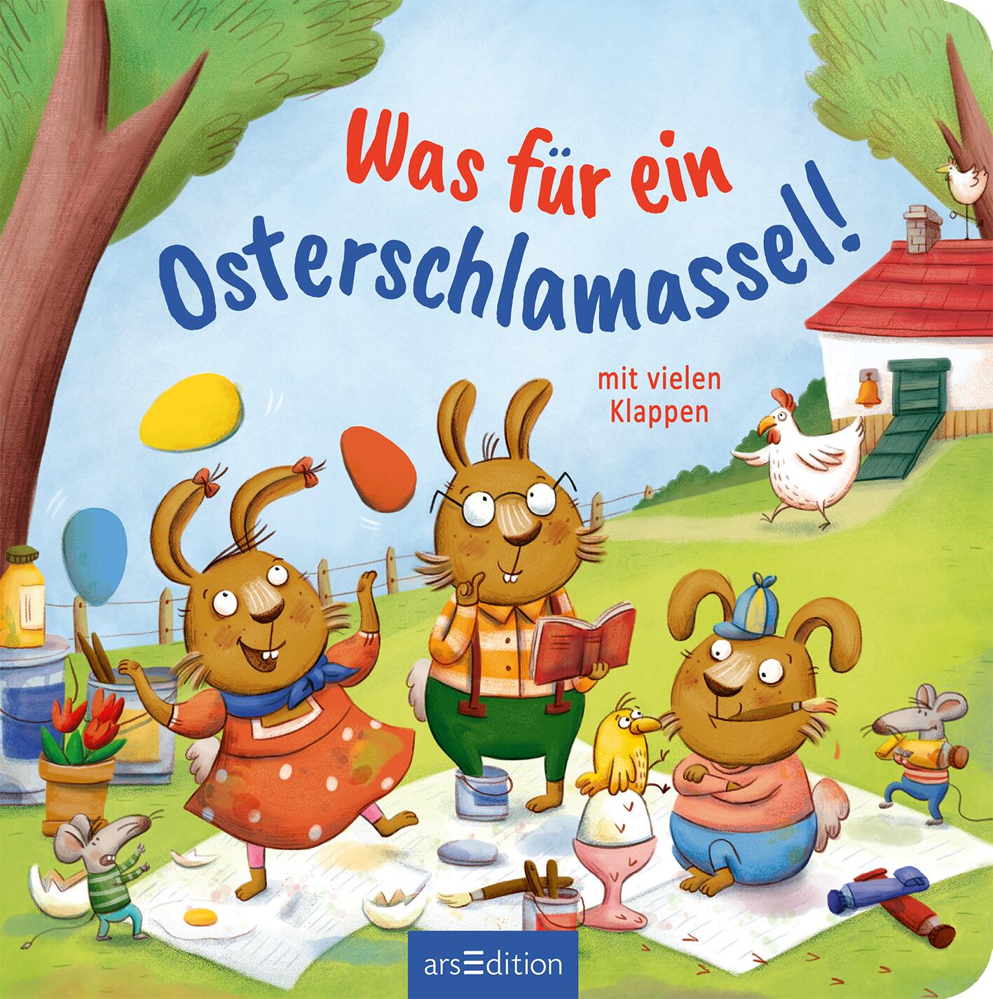 Dieses Jahr sind die 3 jungen Osterhasen Mimi, Mops und Moritz für das Osterfest verantwortlich. Wie aufregend! So sehr, dass sie erst einmal verschlafen. Und statt bei den Hühnern die Eier abzuholen, landen die Hasen im Kuhstall. Das mit der Ostereifarbe ist dann auch nicht so einfach wie gedacht. Was für ein Schlamassel!
