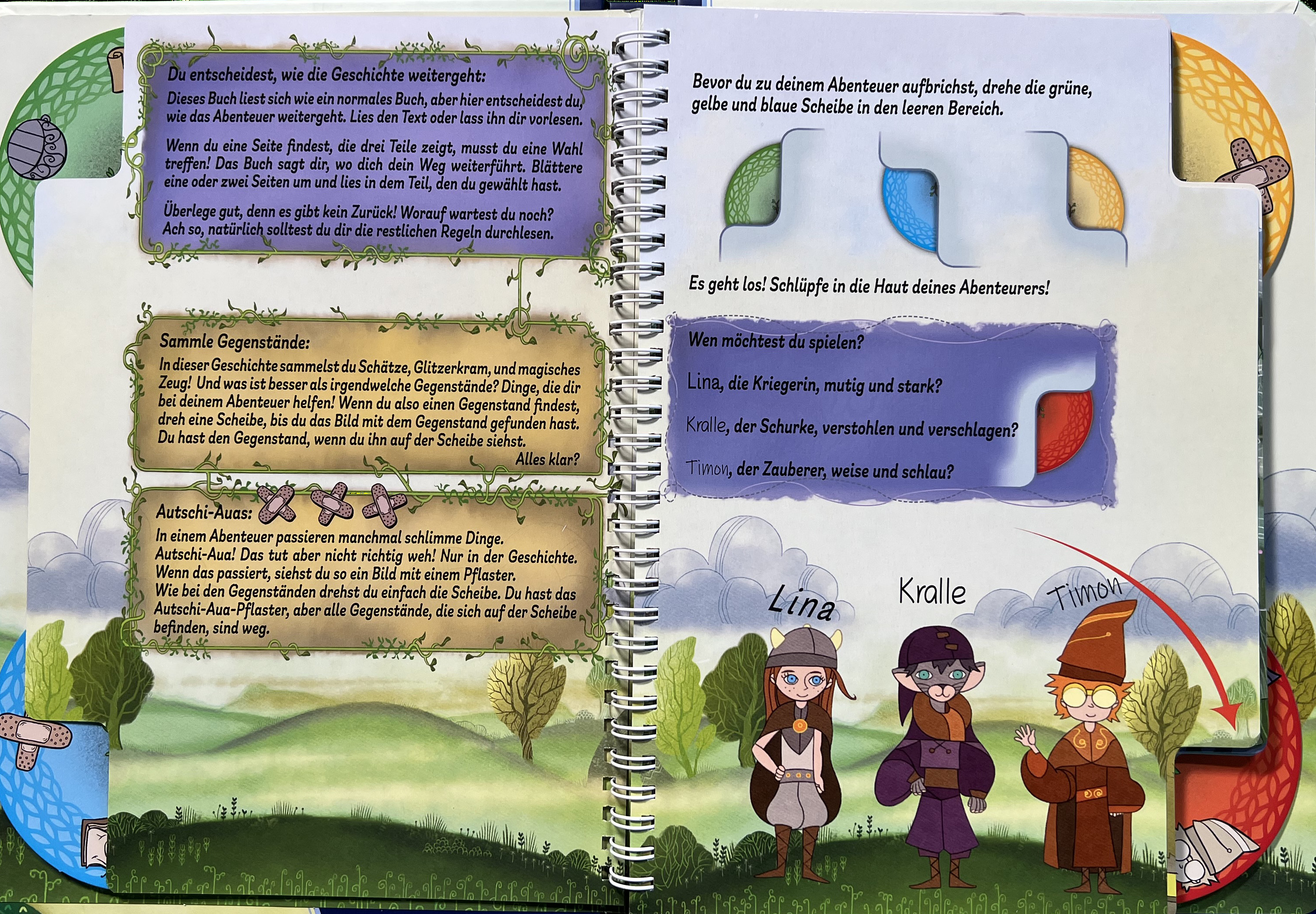 Lies den Text oder lass ihn dir vorlesen. Wenn du eine Seite findest, die drei Teile zeigt, musst du eine Wahl treffen!