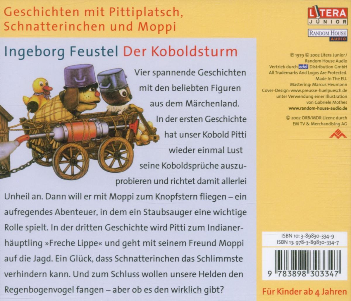 CD Geschichten mit Pittiplatsch, Schnatterinchen und Moppi, von Ingeborg Feustel. Das LITERA -Original auf CD.