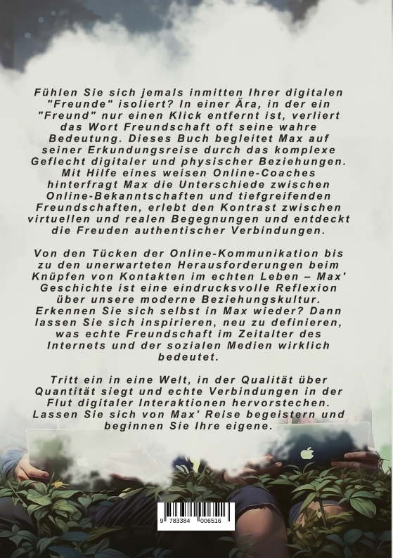 Fühlen Sie sich jemals inmitten Ihrer digitalen "Freunde" isoliert? In einer Ära, in der ein "Freund" nur einen Klick entfernt ist, verliert das Wort Freundschaft oft seine wahre Bedeutung. Dieses Buch begleitet Max auf seiner Erkundungsreise durch das komplexe Geflecht digitaler und physischer Beziehungen. Mit Hilfe eines weisen Online-Coaches hinterfragt Max die Unterschiede zwischen Online-Bekanntschaften und tiefgreifenden Freundschaften, erlebt den Kontrast zwischen virtuellen und realen Begegnungen und entdeckt die Freuden authentischer Verbindungen.Von den Tücken der Online-Kommunikation bis zu den unerwarteten Herausforderungen beim Knüpfen von Kontakten im echten Leben - Max' Geschichte ist eine eindrucksvolle Reflexion über unsere moderne Beziehungskultur. Erkennen Sie sich selbst in Max wieder? Dann lassen Sie sich inspirieren, neu zu definieren, was echte Freundschaft im Zeitalter des Internets und der sozialen Medien wirklich bedeutet.Tritt ein in eine Welt, in der Qualität über Quantität siegt und echte Verbindungen in der Flut digitaler Interaktionen hervorstechen. Lassen Sie sich von Max' Reise begeistern und beginnen Sie Ihre eigene.