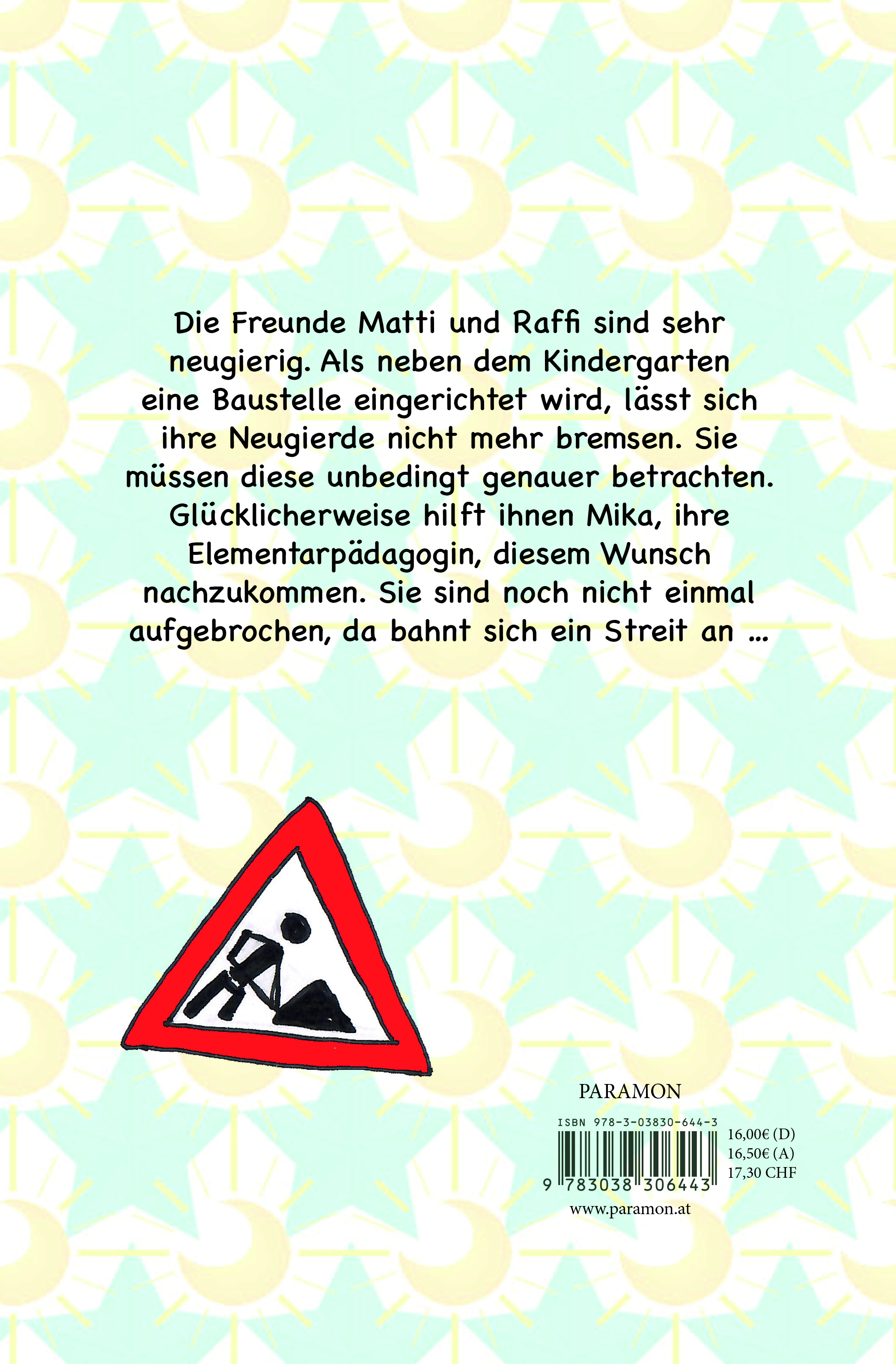 Die Freunde Matti und Raffi sind sehr neugierig. Als neben dem Kindergarten eine Baustelle eingerichtet wird, lässt sich ihre Neugierde nicht mehr bremsen. Sie müssen diese unbedingt genauer betrachten. Glücklicherweise hilft ihnen Mika, ihre Elementarpädagogin, diesem Wunsch nachzukommen. Sie sind noch nicht einmal aufgebrochen, da bahnt sich ein Streit an ...