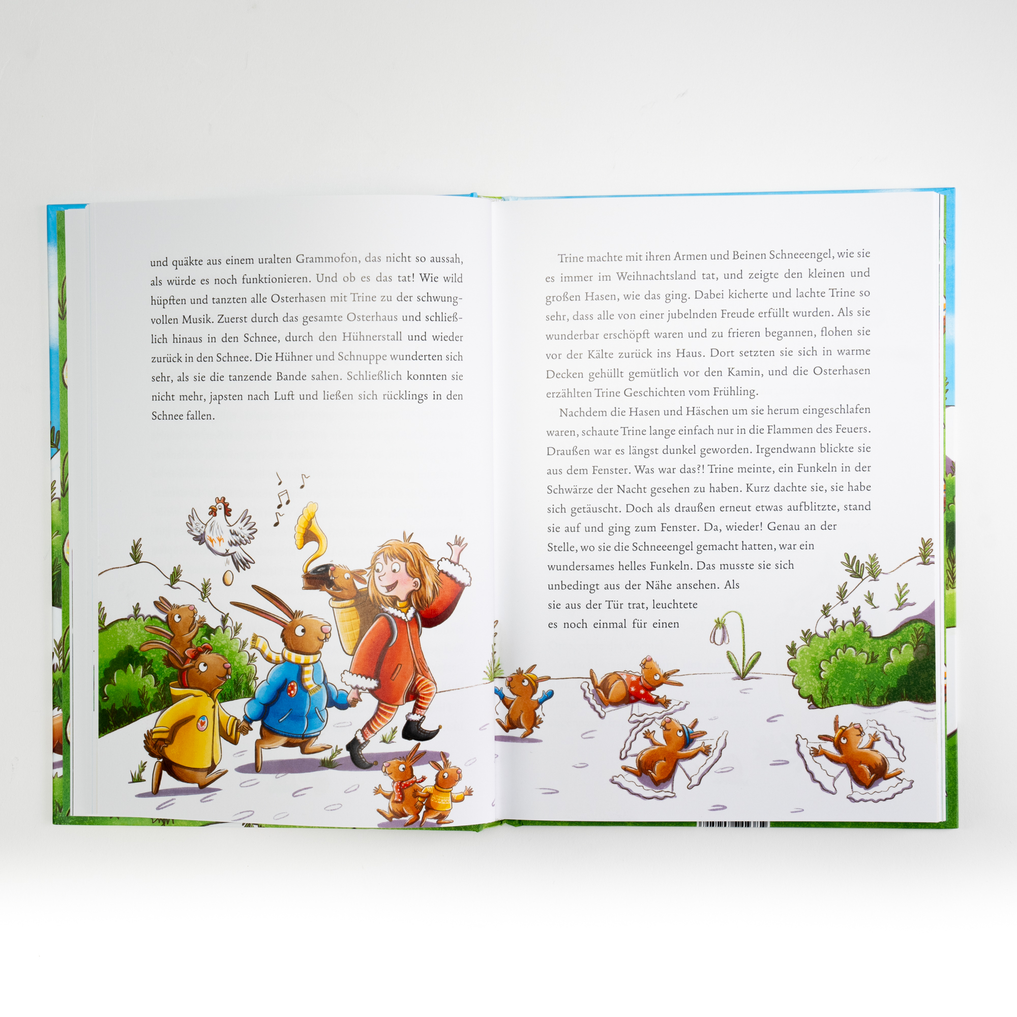 Auf der Osterinsel stimmt etwas nicht: Weit und breit kein buntes Ei, nirgendwo blüht auch nur ein Blümchen, und es liegt immer noch Schnee. So wird das nichts mit dem Osterfest. Der Osterhase bittet Trine um Hilfe, die sofort tatkräftig mit anpackt, um endlich den Frühling anzulocken. Mit ihrem hüpfenden Herzen und ihren guten Ideen hilft sie den Hasenkindern, die Hühner mit fantasievollen Bildern zum Legen von bunten Eiern zu animieren, und probiert verschiedene Osterbräuche aus. Zusammen schaffen sie es bestimmt, Ostern zu retten!
