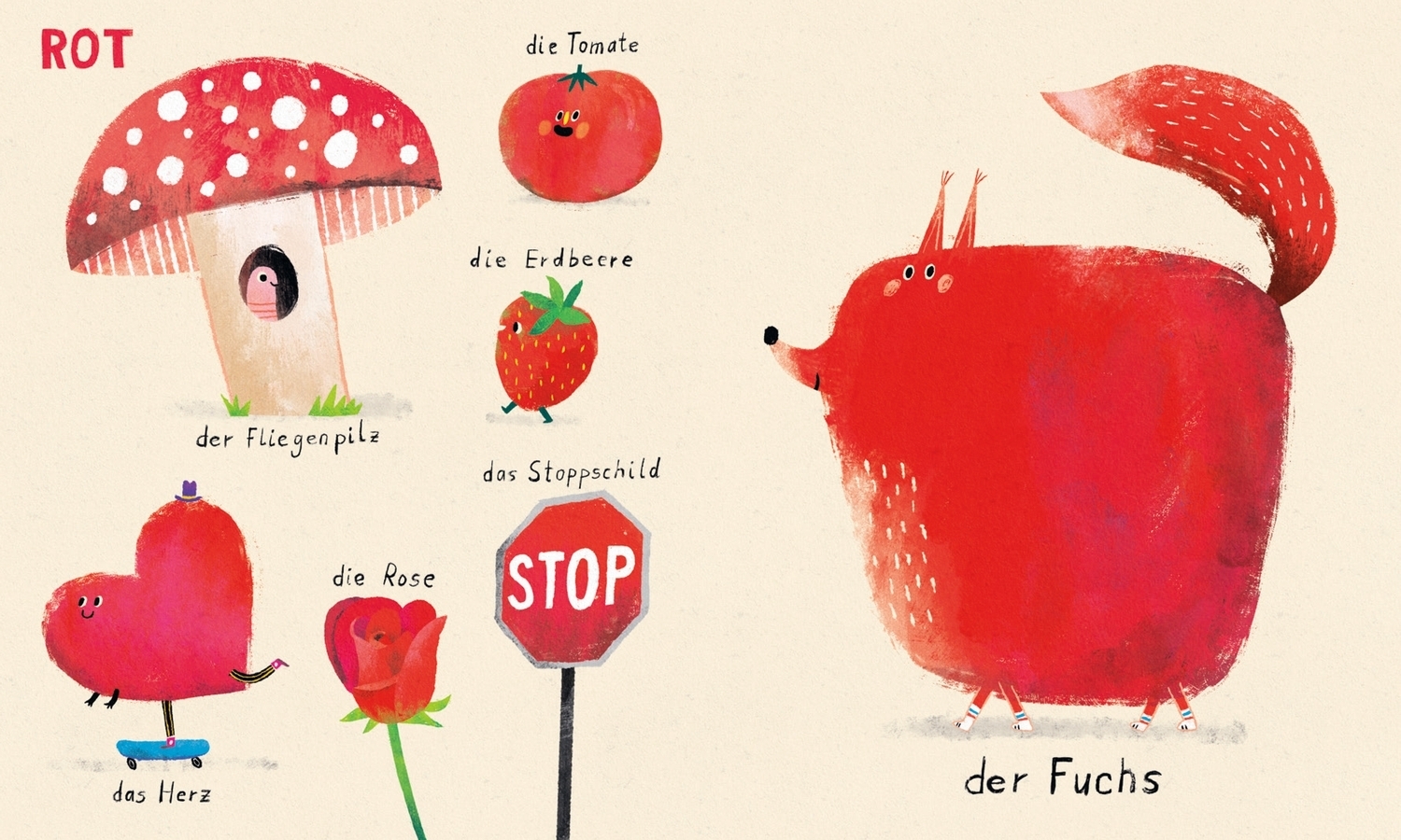- Erste Wörter lernen: Die plakativen Illustrationen laden zum Erkennen und Benennen ein.